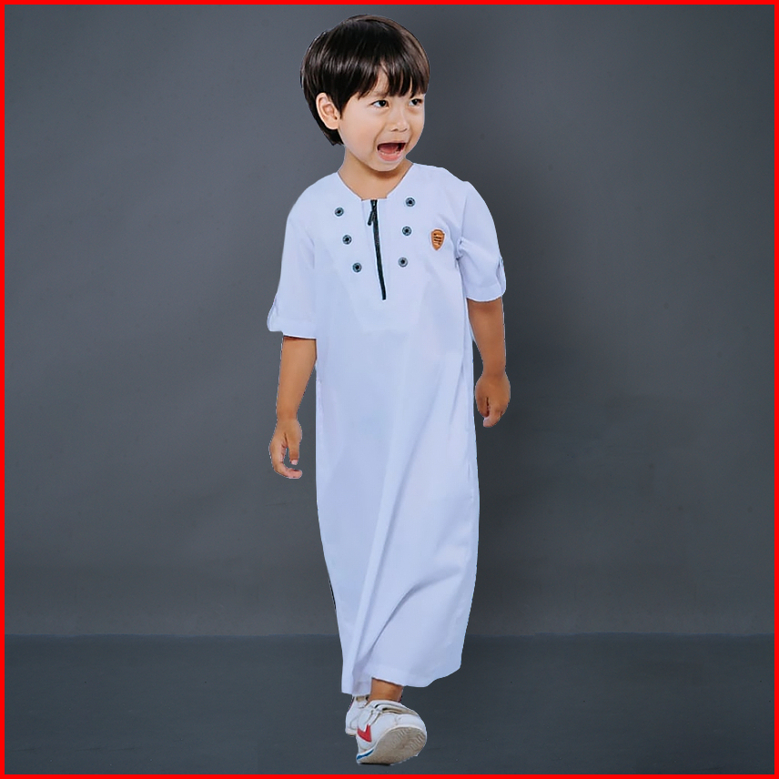 Kawan Muslim - Jubah Gamis Anak Laki Laki Putih Premium Lengan Pendek Bahan Adem Usia 1-14 Tahun Model Polosan