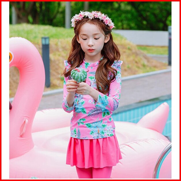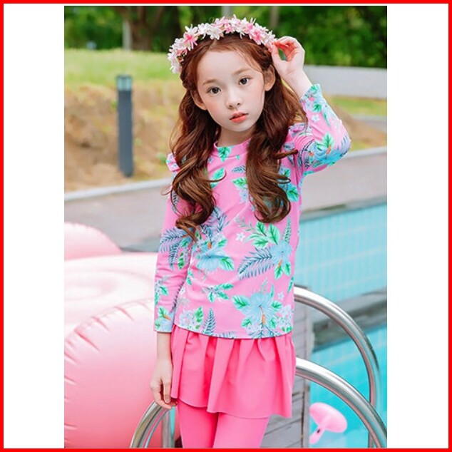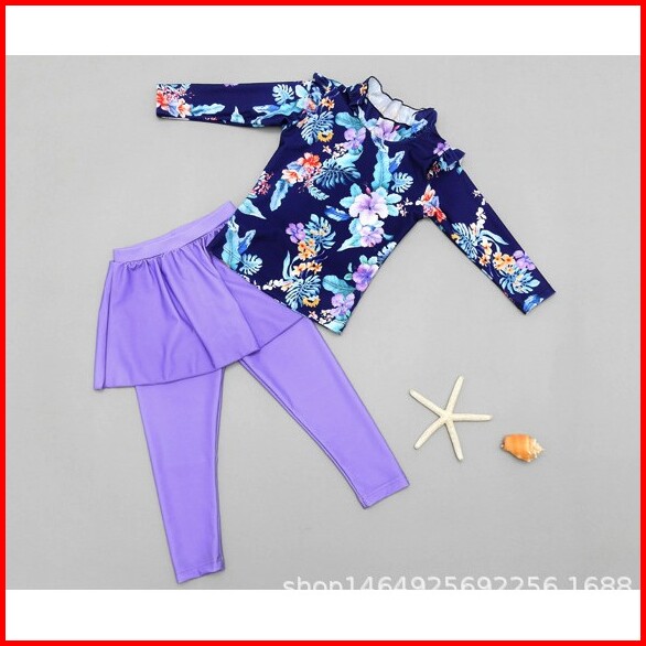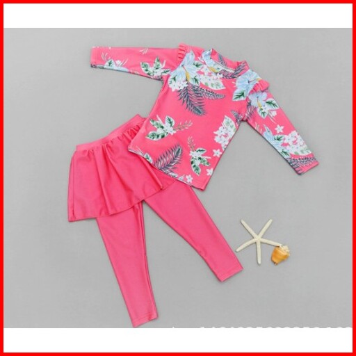 Swimming Fun - Baju Renang Anak Cewek Perempuan Bunga Flower Setelan Renang Panjang Muslimah Swimsuit