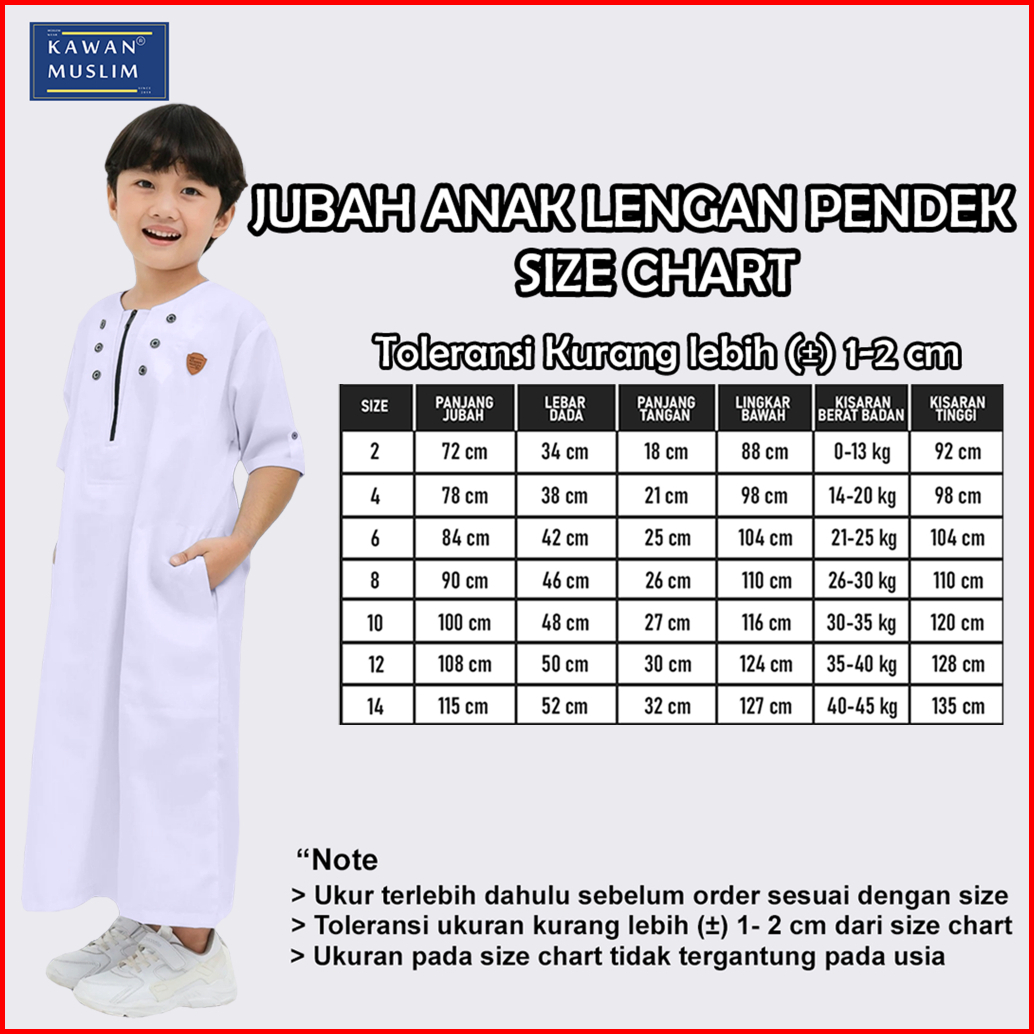 Kawan Muslim - Jubah Gamis Anak Cowok Laki Laki Remaja Lengan Pendek 1-14 Tahun Km1 Series