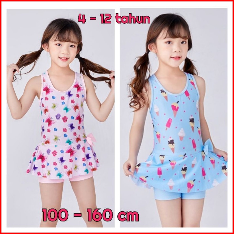 Baju Renang Anak Perempuan Swimsuit Pink Butterfly Blue Ice Cream 4-12 Tahun