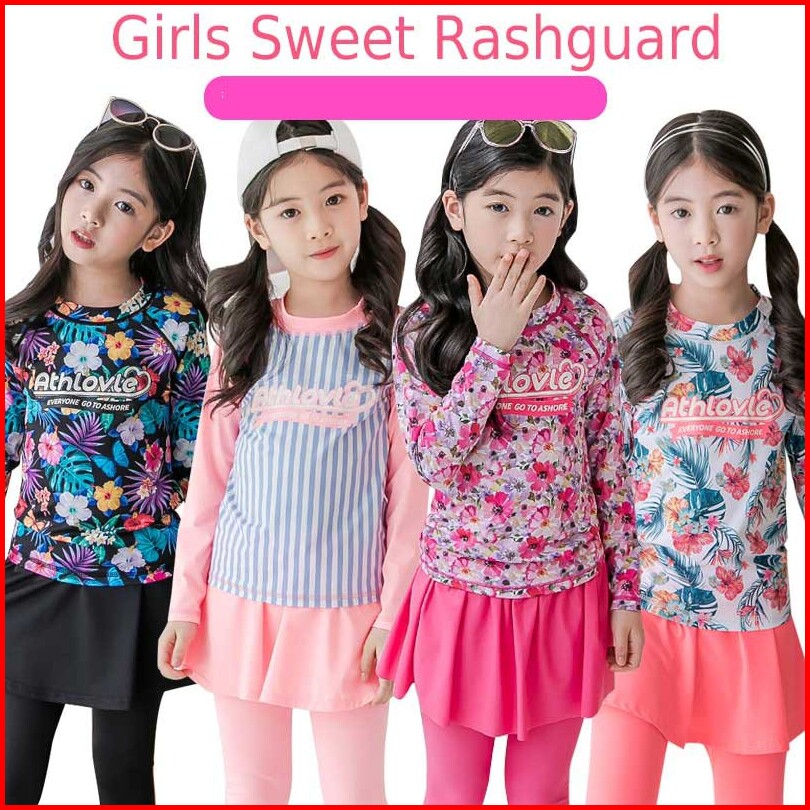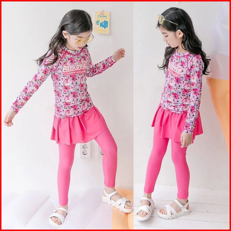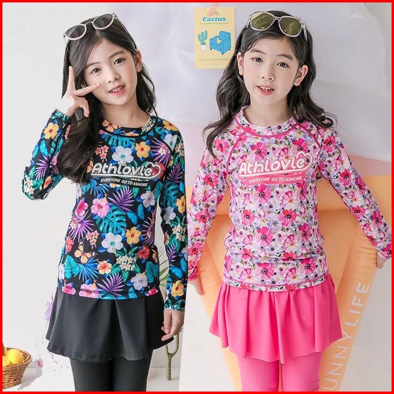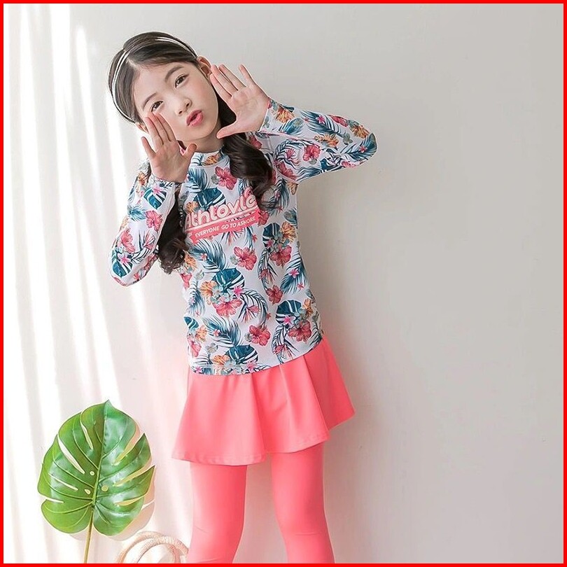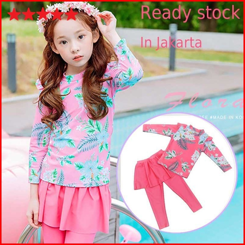 Ready 2-10 Tahun Gadis Baju Renang Anak Perempuan Model Lengan Panjang Rok Untuk Gaun Pantai