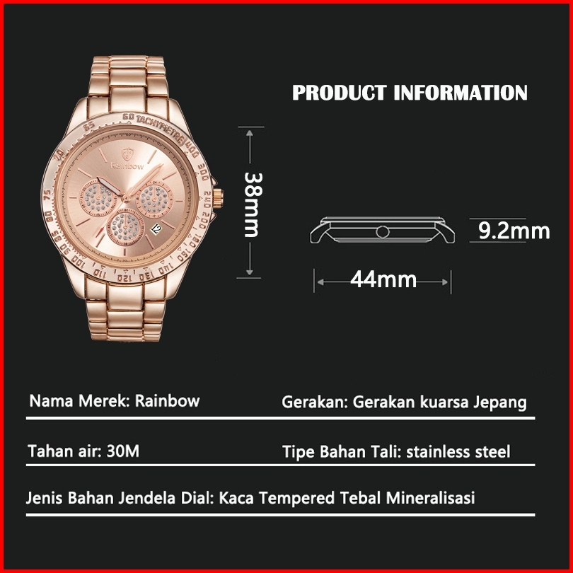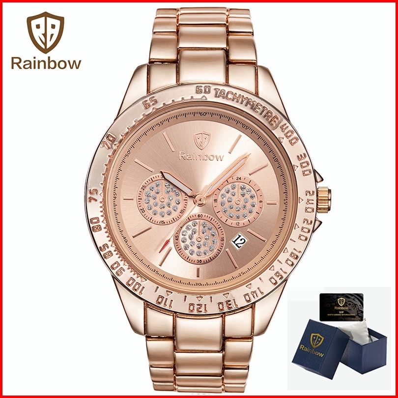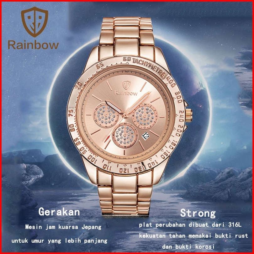 Rainbow Jam Tangan Wanita Anti Air Original Analog Stainless Steel Casual Fashion Free Kotak