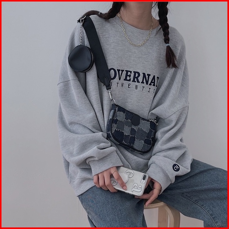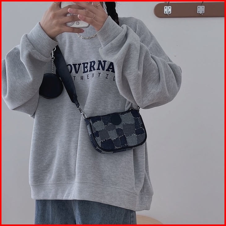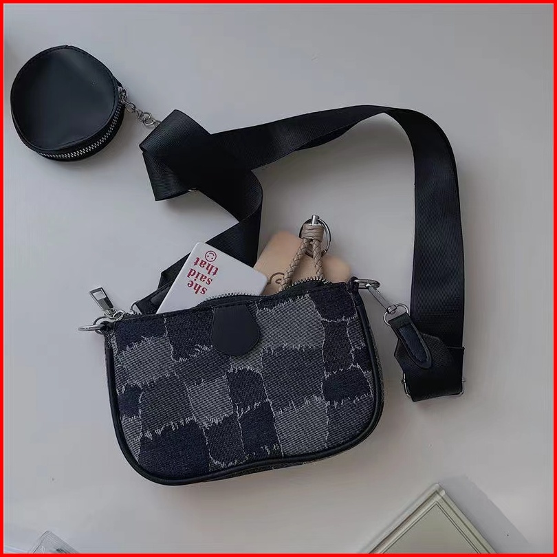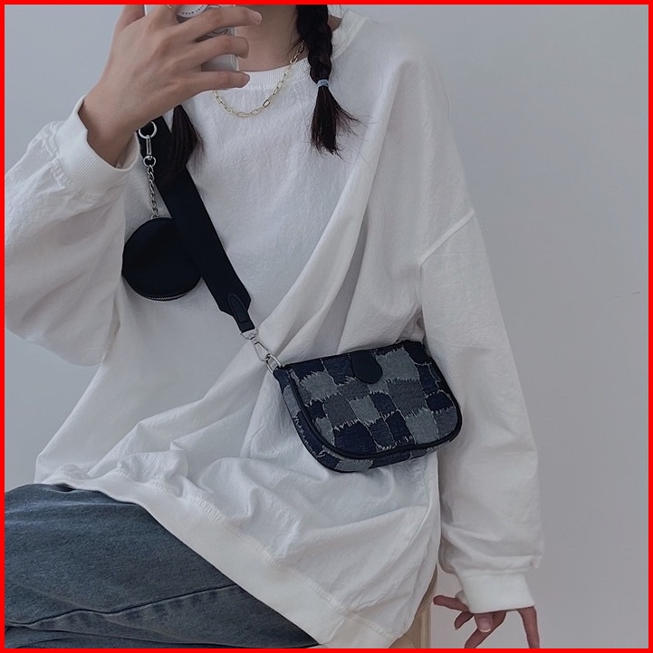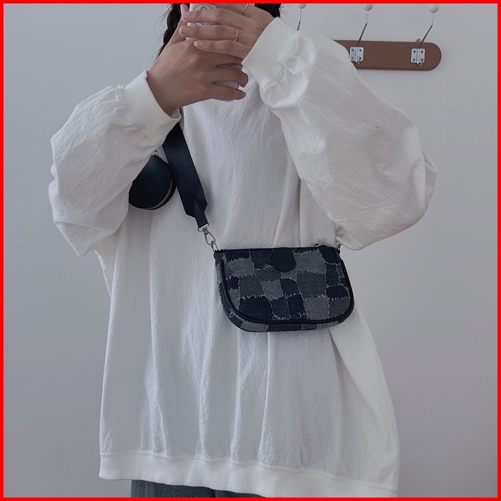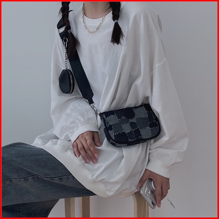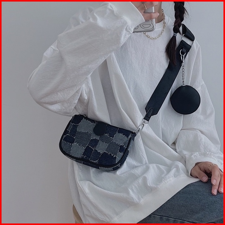 Tas Kecil Tas Messenger Wanita Tas Mahasiswa All-match Asli Niche Biru Retro Manis Keren Tas Persegi Kecil