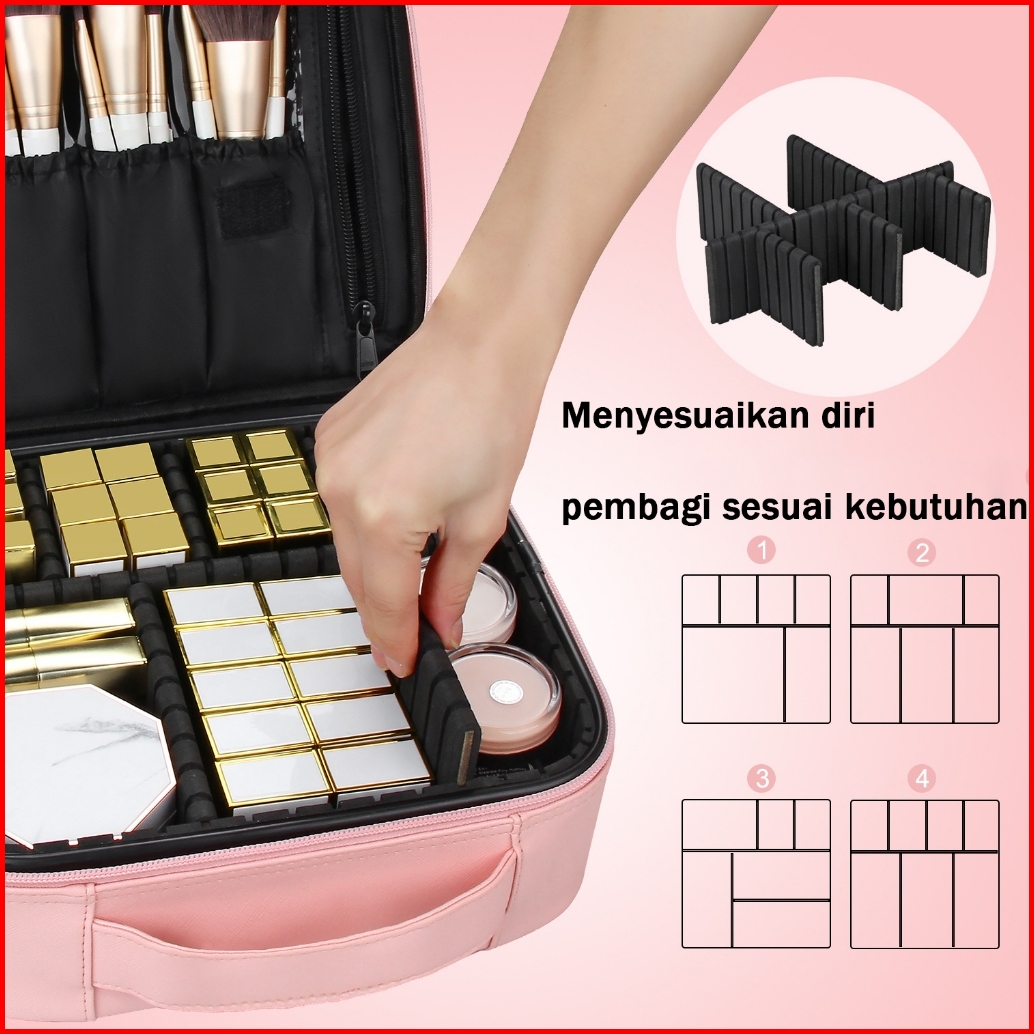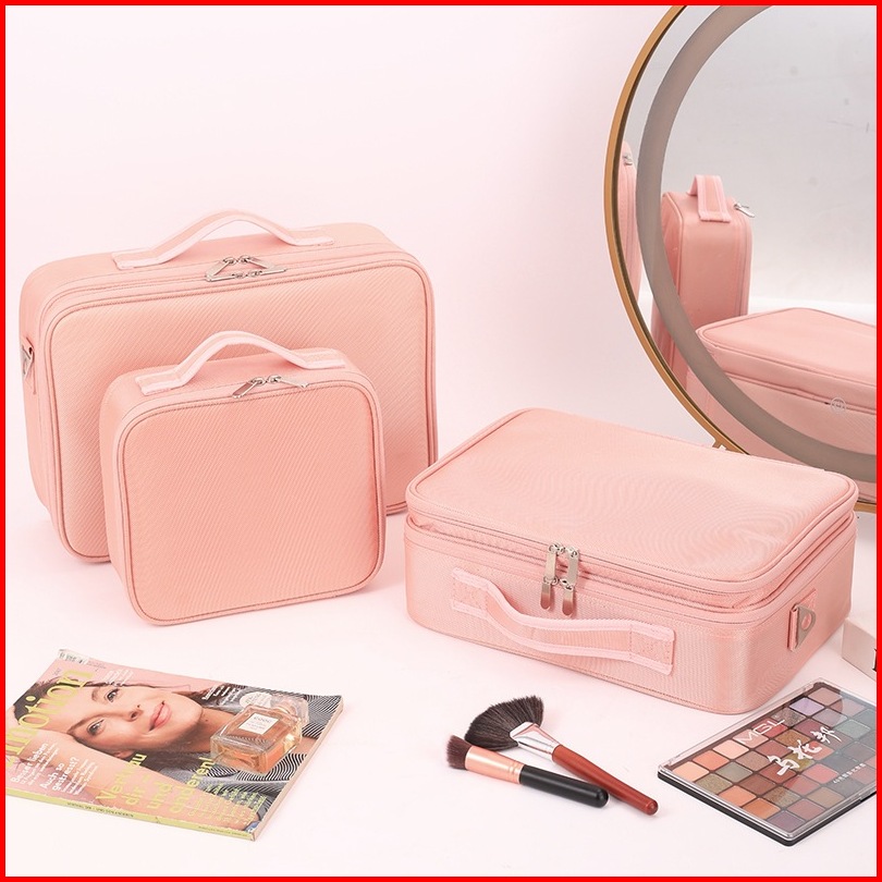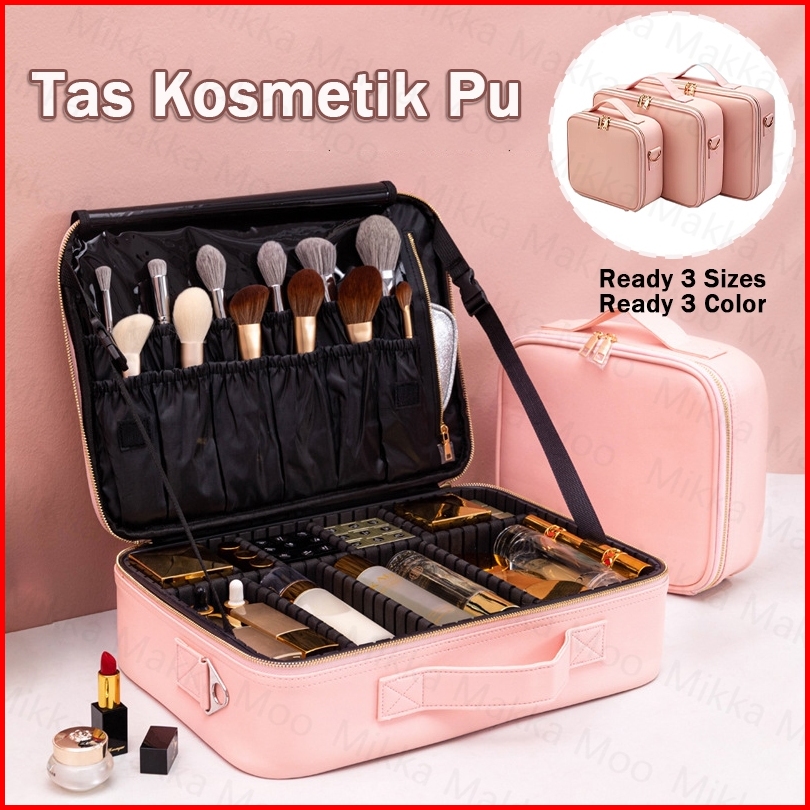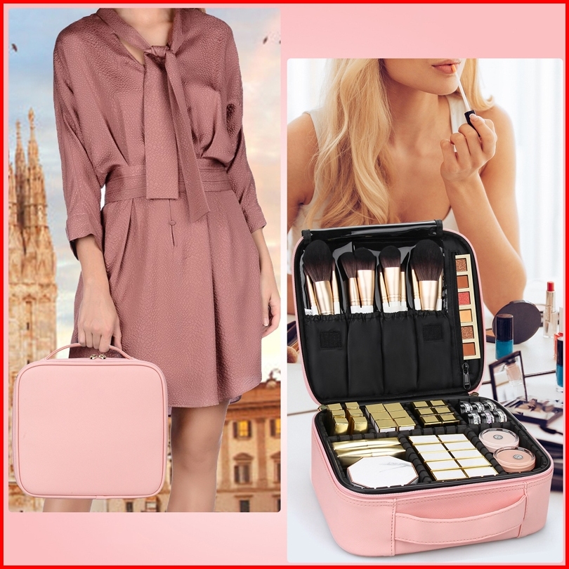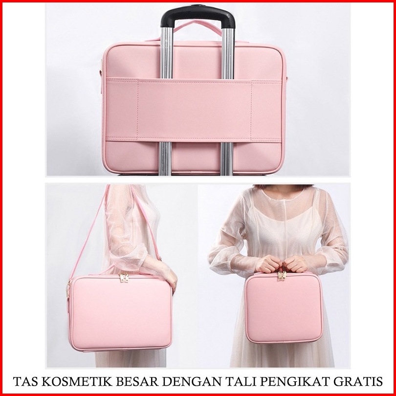 Beauty Case Tas Kosmetik Make Up Artist Pu Untuk Traveling 3 Ukuran Kompartemen Penyelenggara Rias Wajah Merah Muda Geng