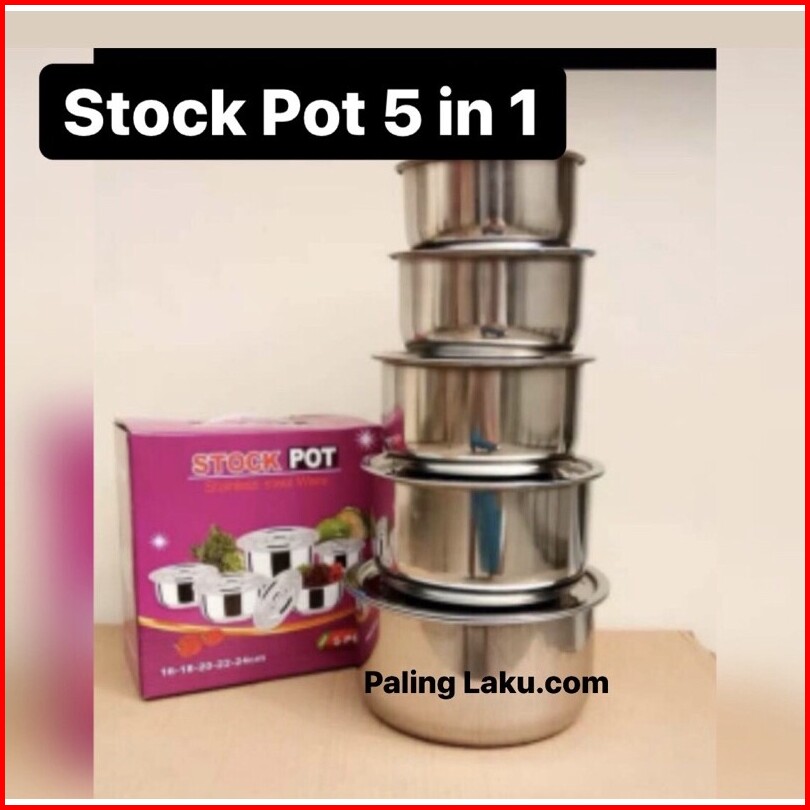 Paling Laku 5 Pcs Stock Pot Stainless Steel Ware 1 Set 5 Pcs O