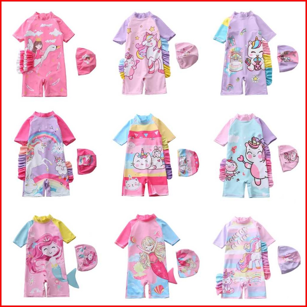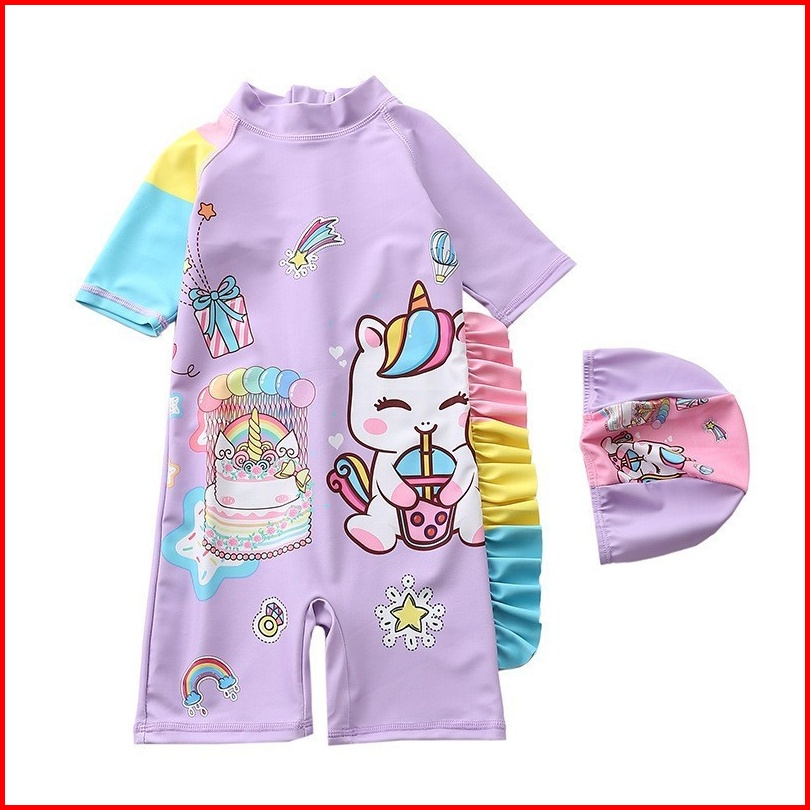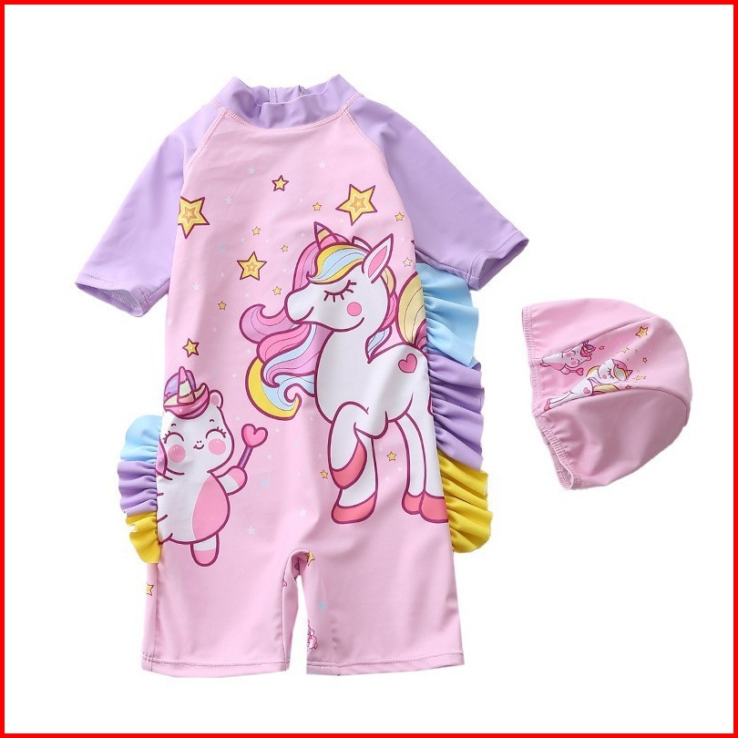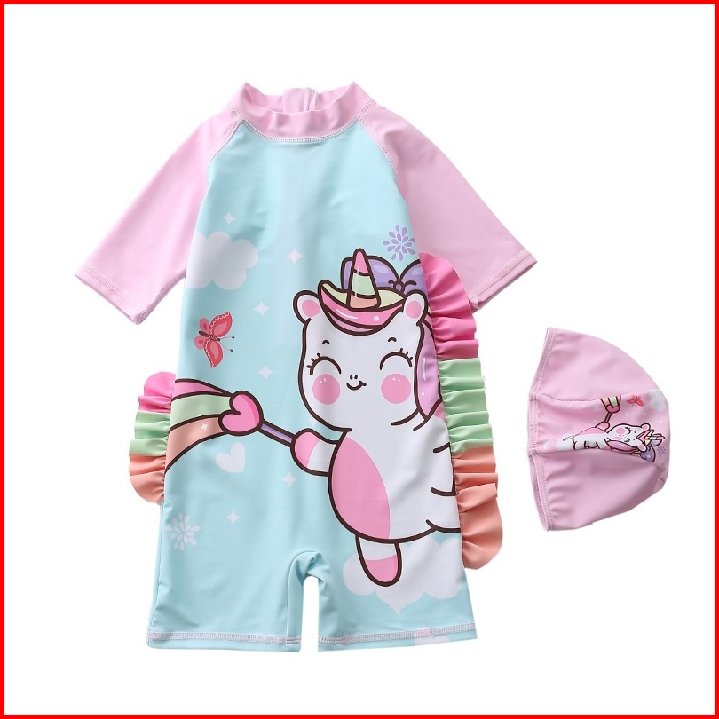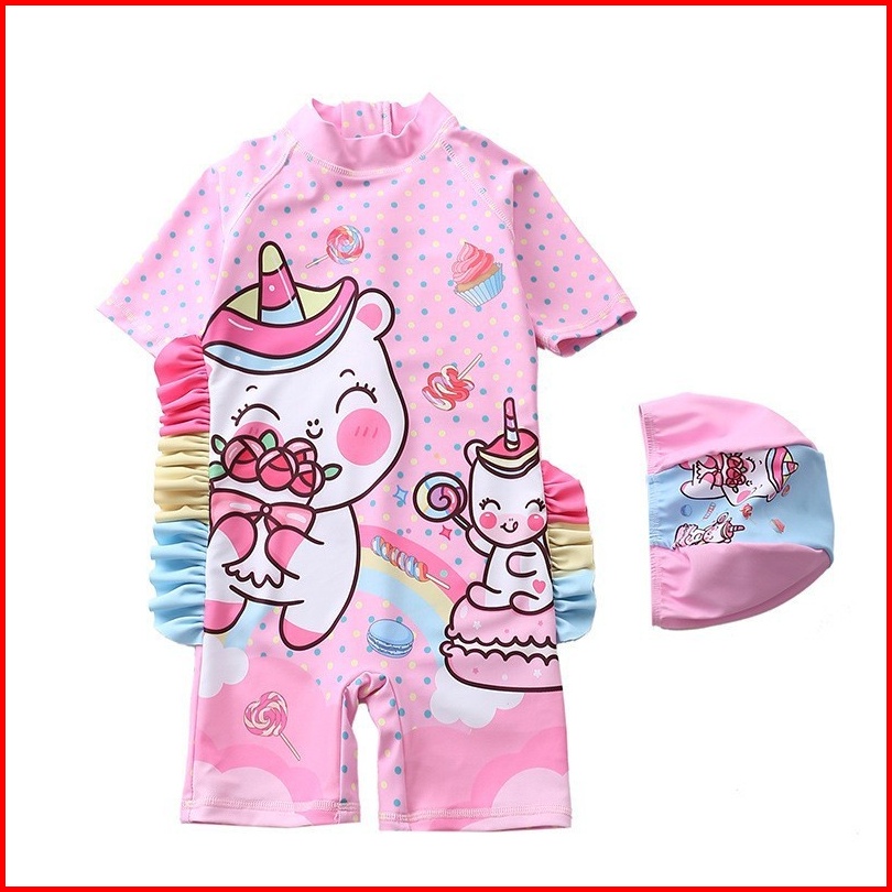 Chubbi 1- Free Topi Baju Renang Anak Perempuan One Piece Pendek Ruffle Cute Cartoon
