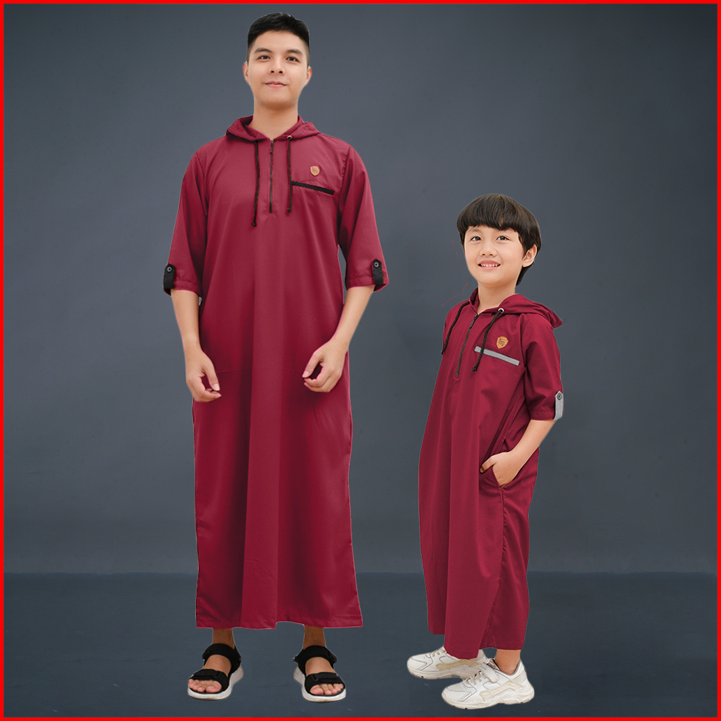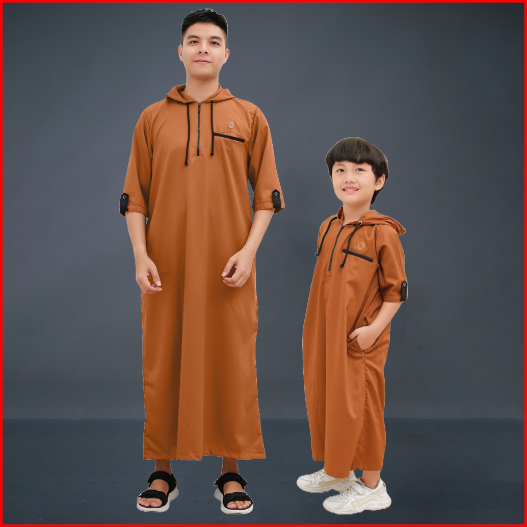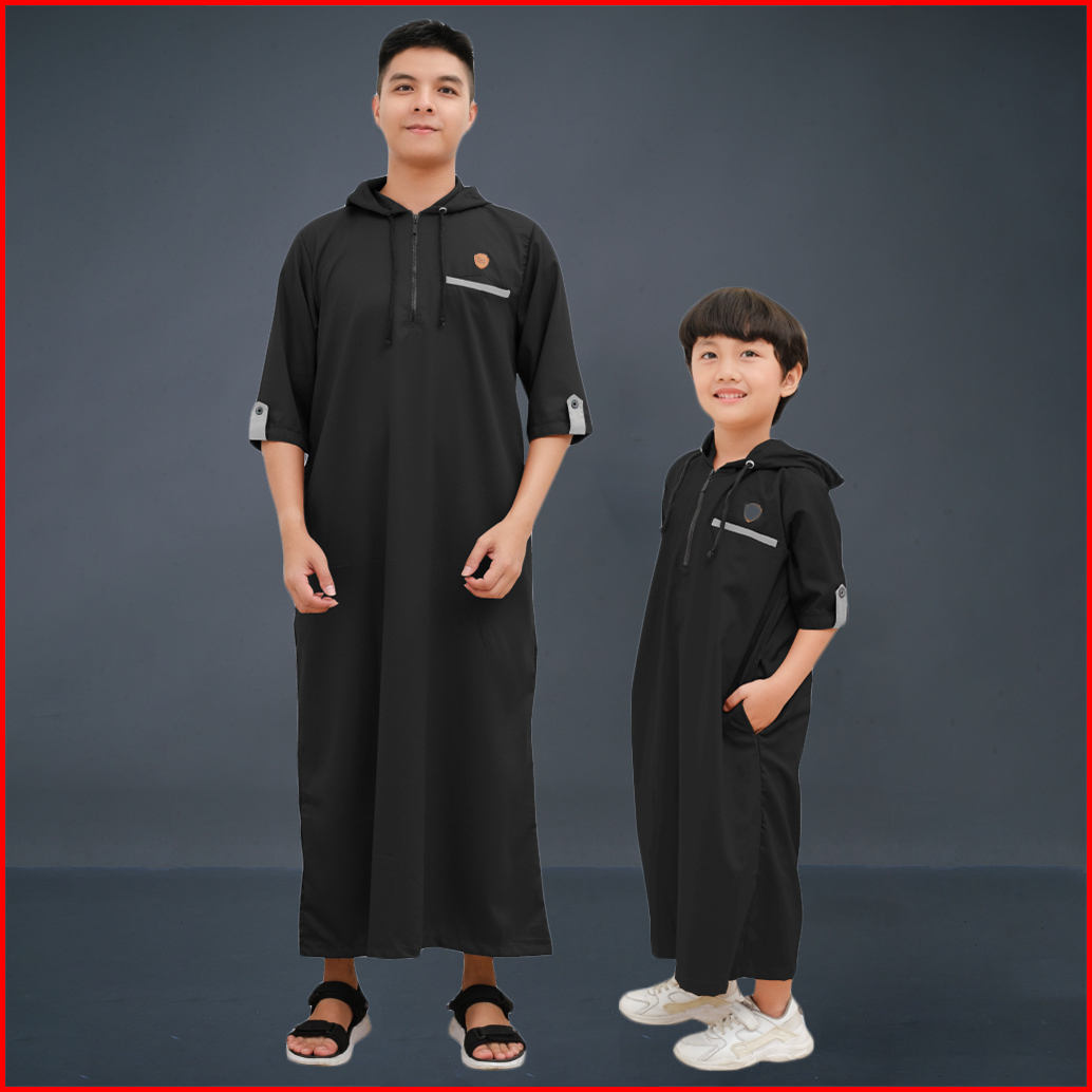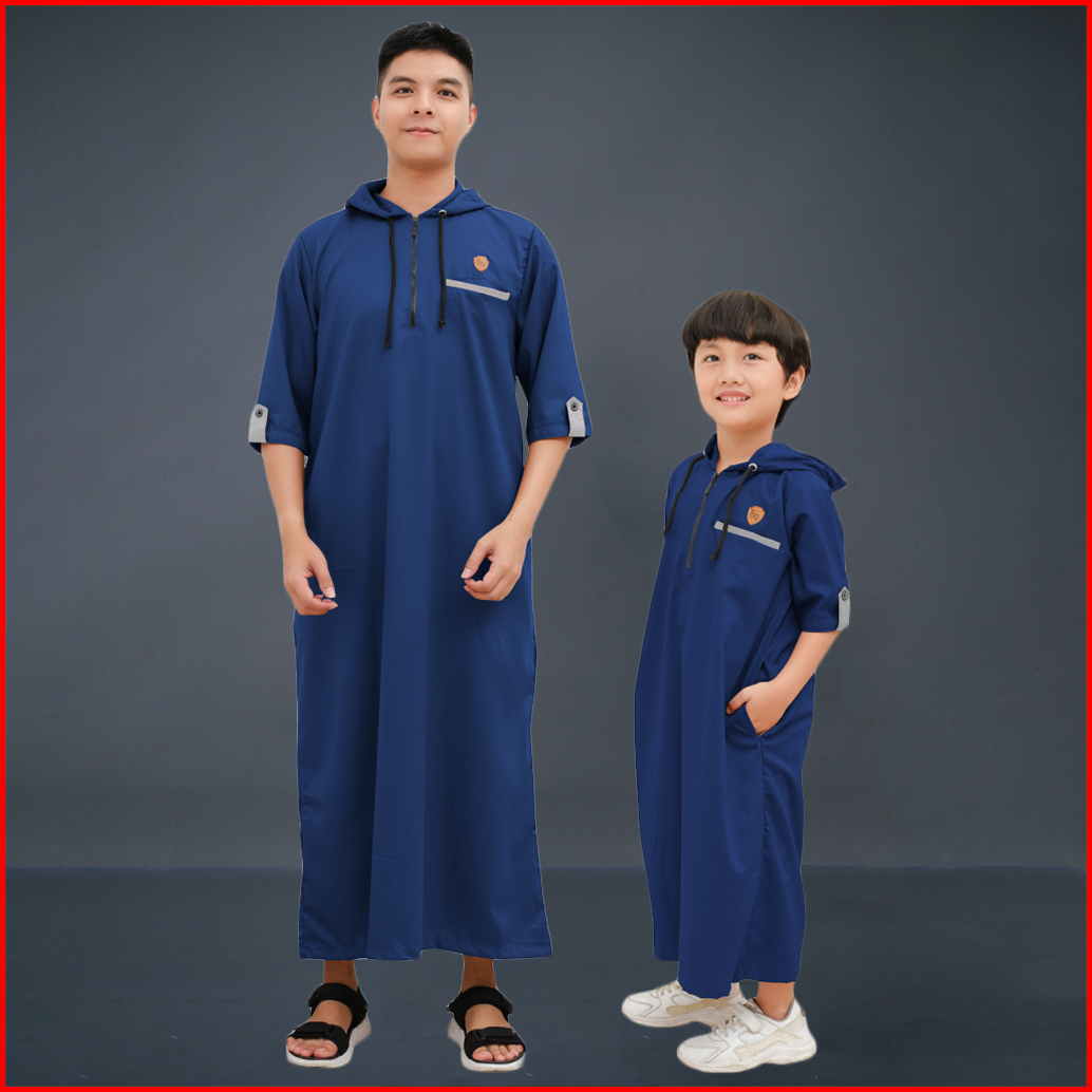 Kawan Muslim - Jubah Hoodie Gamis Couple Ayah Anak Laki Laki Premium Warna Biru Navy Modern Bahan Adem
