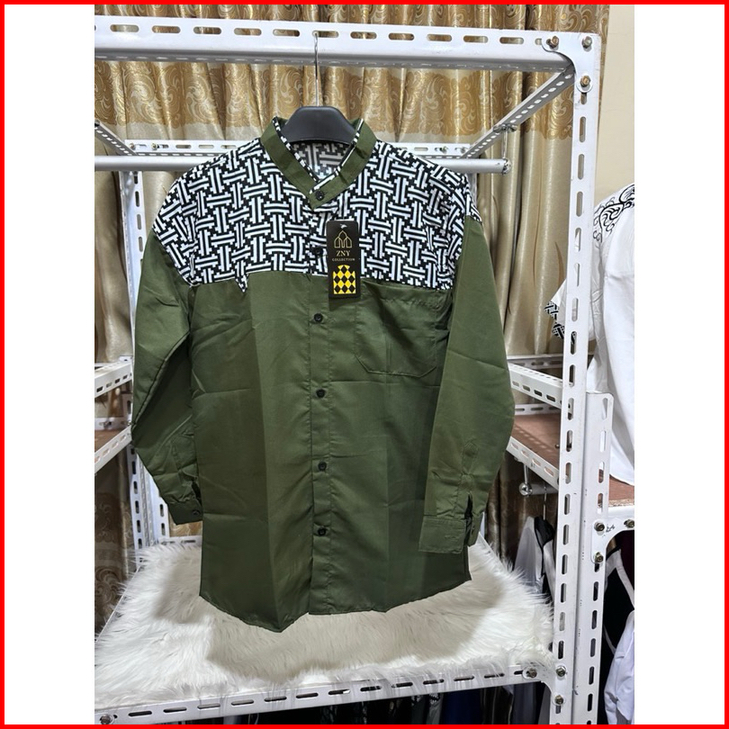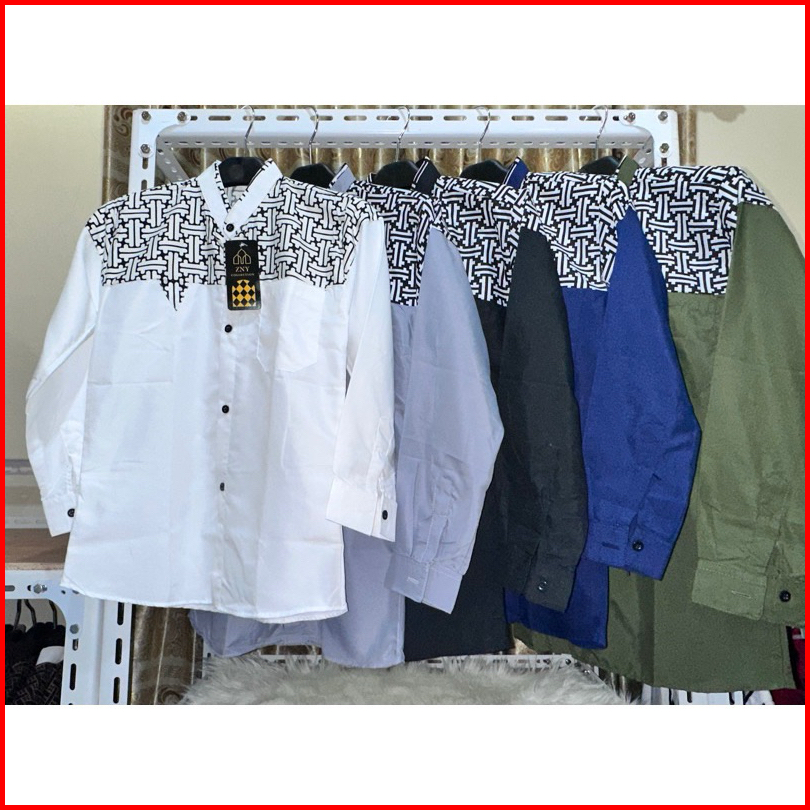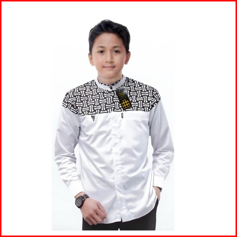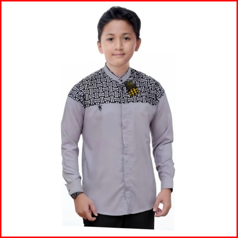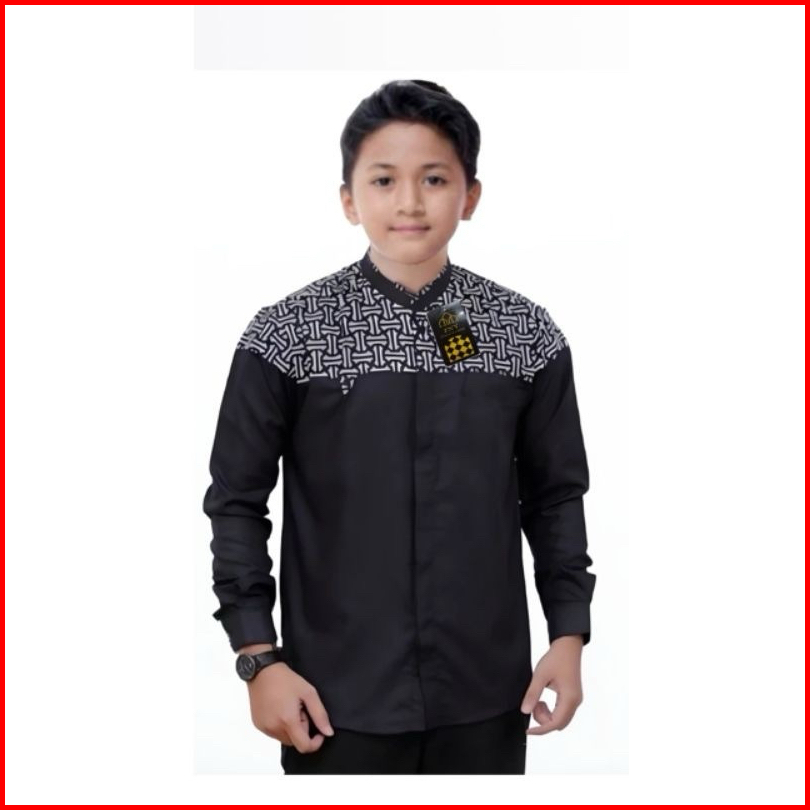 Baju Koko Anak Remaja Lengan Panjang Kombinasi Batik Falkon