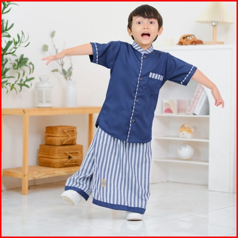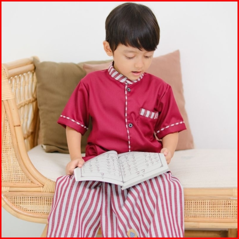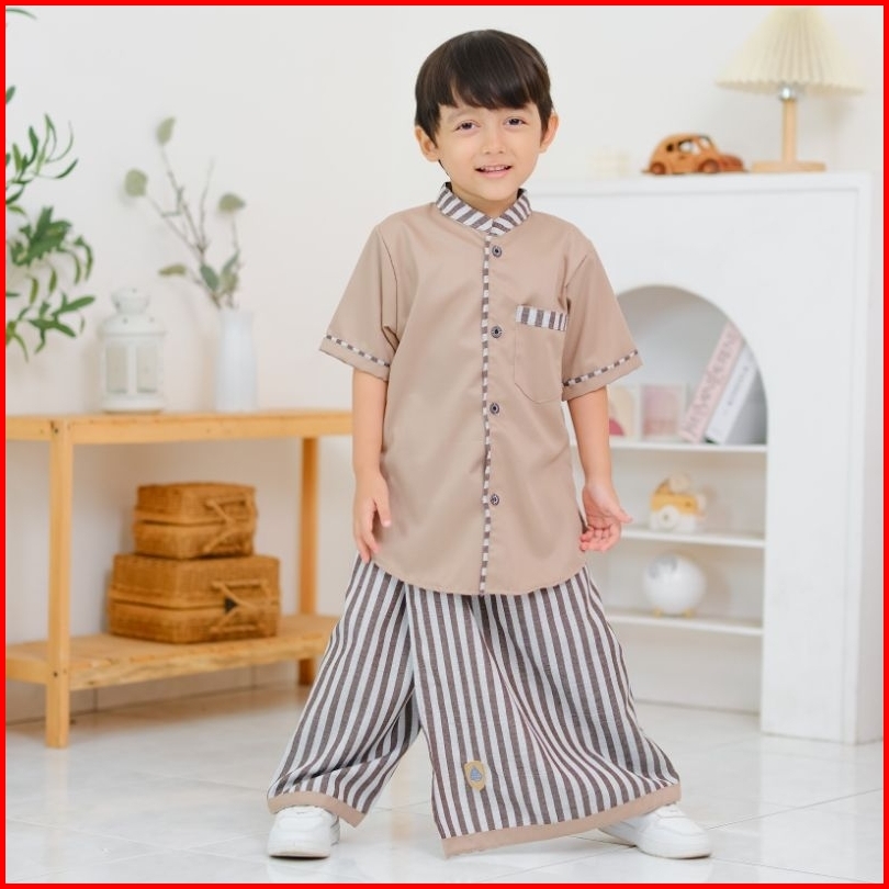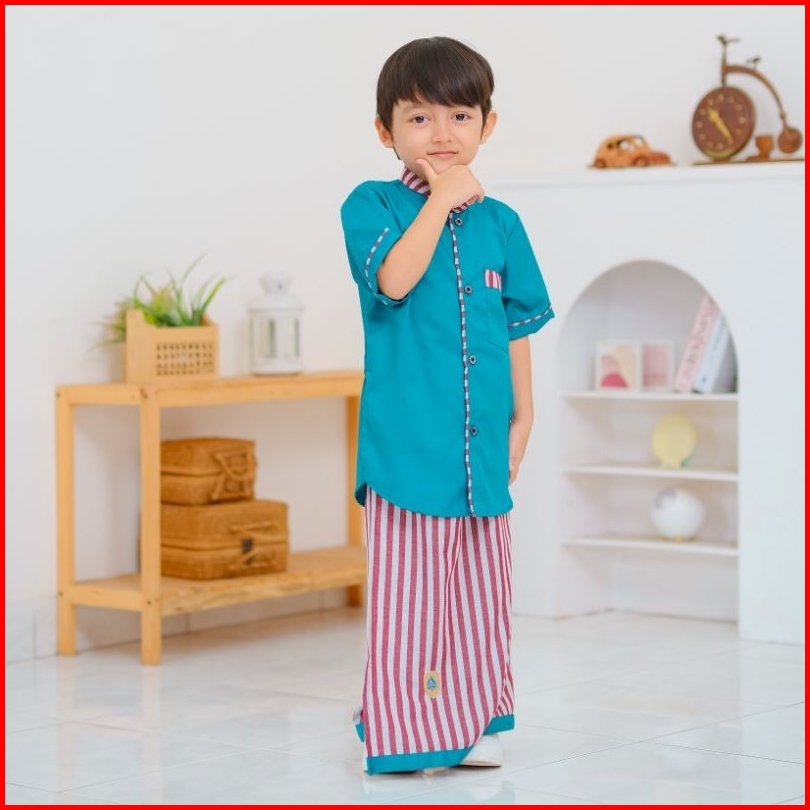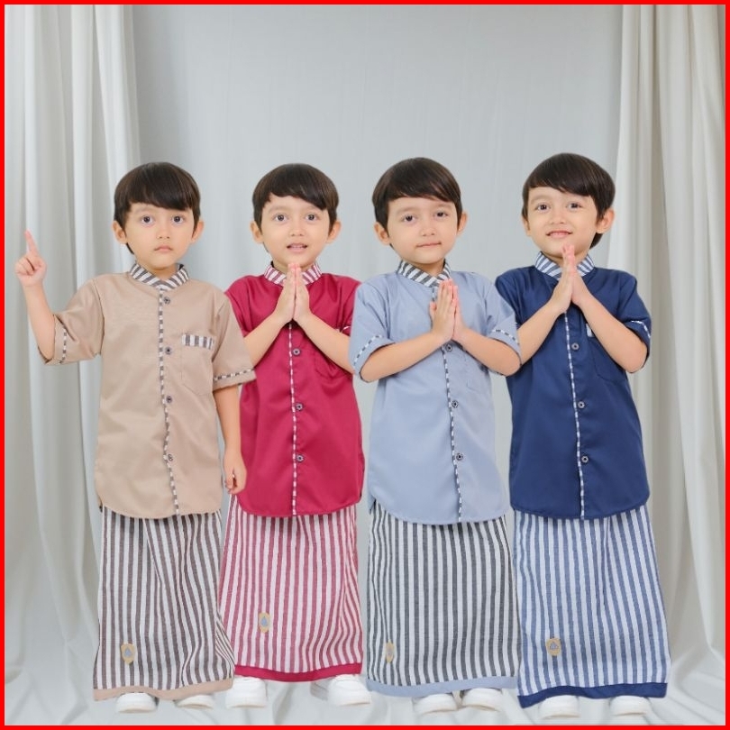 Alkamil Koko Anak Fashion Muslim Anak Baju Koko Setelan Celana Sarung Setelan Koko Anak Laki-laki Usia 1-10 Tahun Bahan