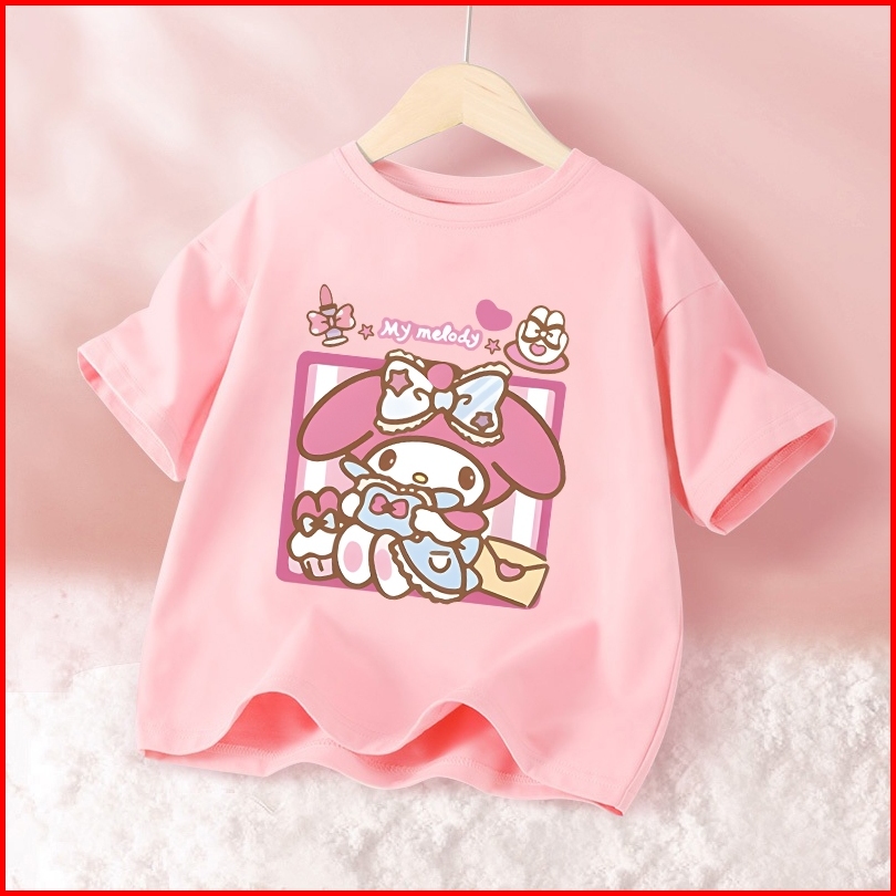 Aimeeli Baju Kaos Atasan Anak Perempuan Cartoon Baju Sanrio Melody T-shirt Terbaru Import 2-12 Tahun