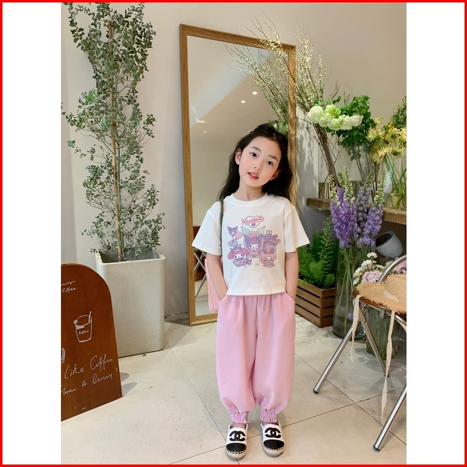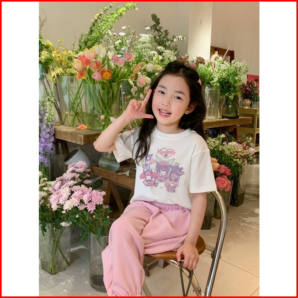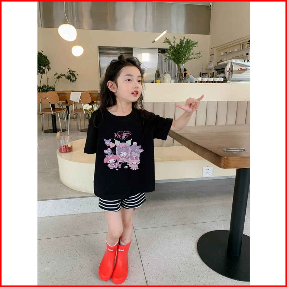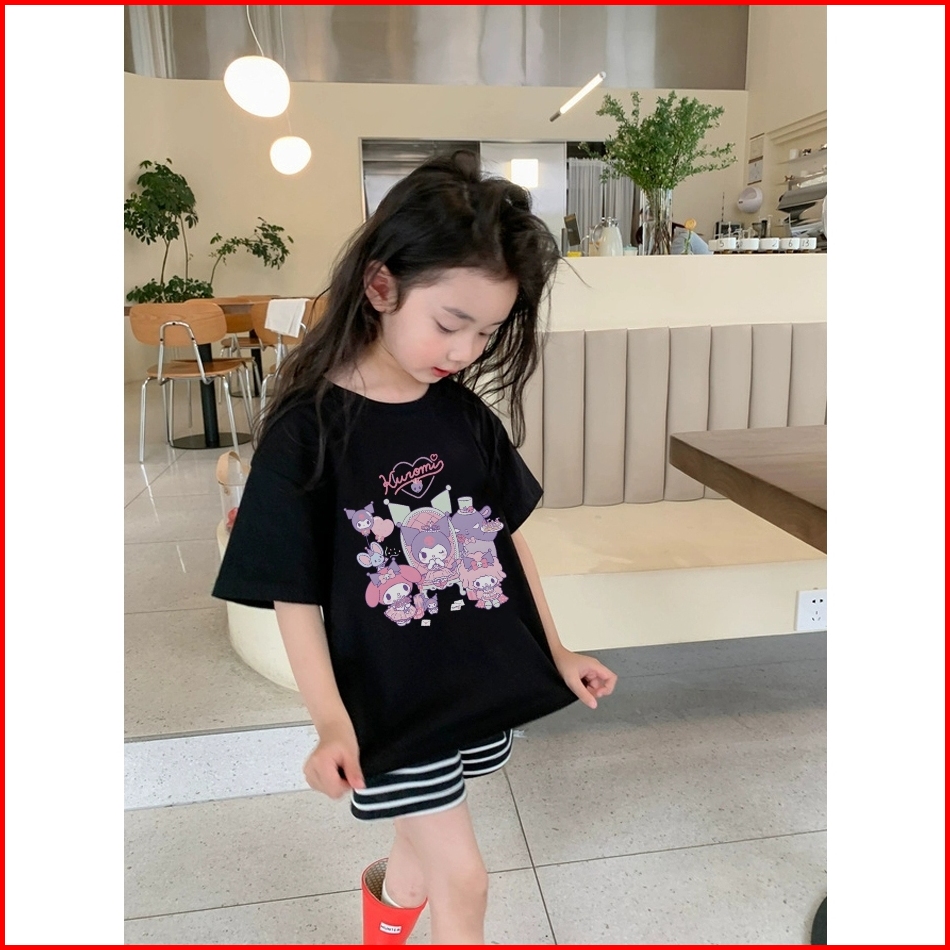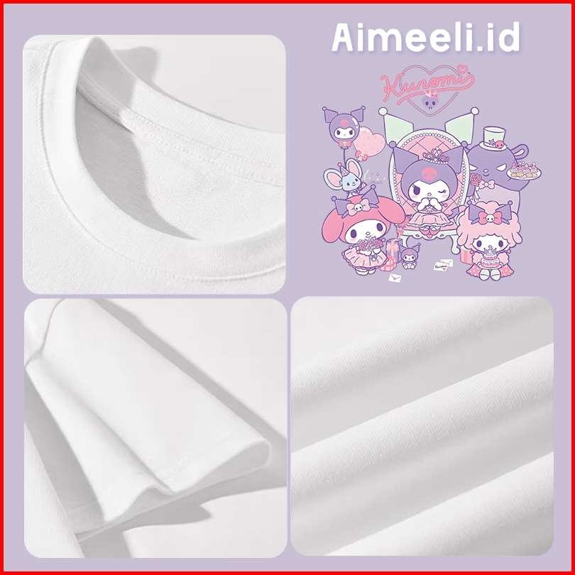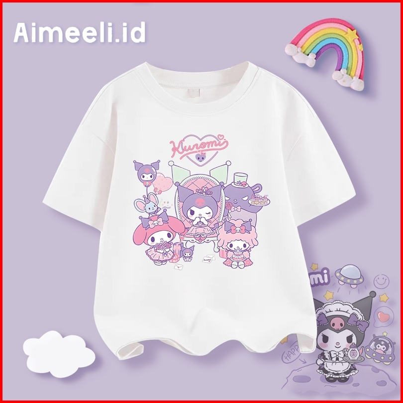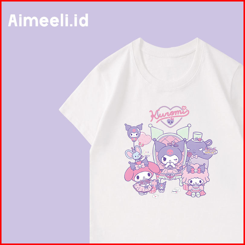 Aimeeli Kaos Atasan Anak Perempuan Cartoon Sanrio Kuromi Melody T-shirt Terbaru Import 2-12 Tahun