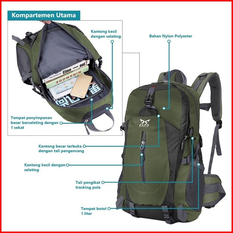 Elfs Active Tas Gunung Carrier Ransel 32l Dengan Peluit Water Resistant Tas Carrier Fk8607 Free Raincover