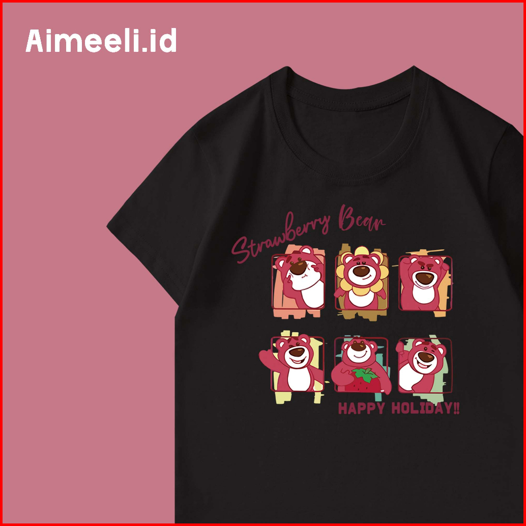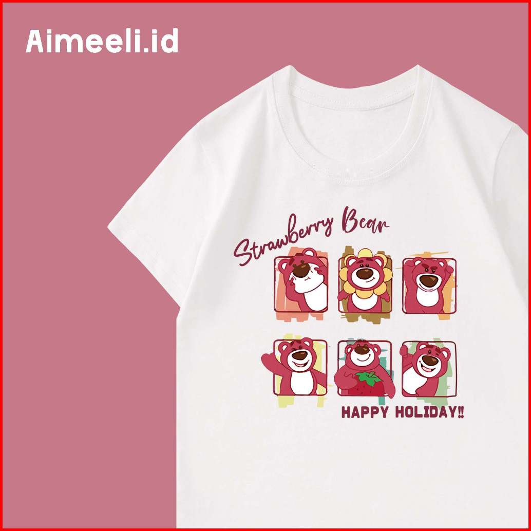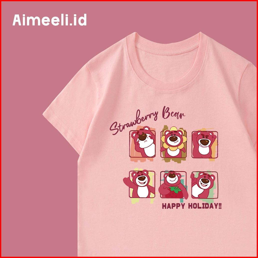 Aimeeli.id Kaos Atasan Anak Perempuan Cartoon Strawberry Bear T-shirt Terbaru Import 2-12 Tahun