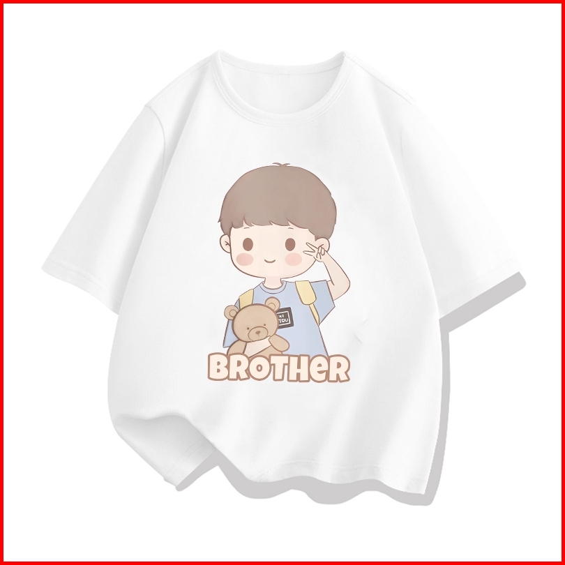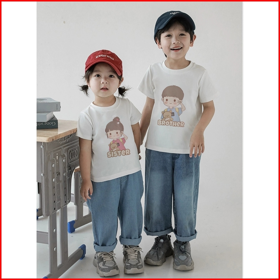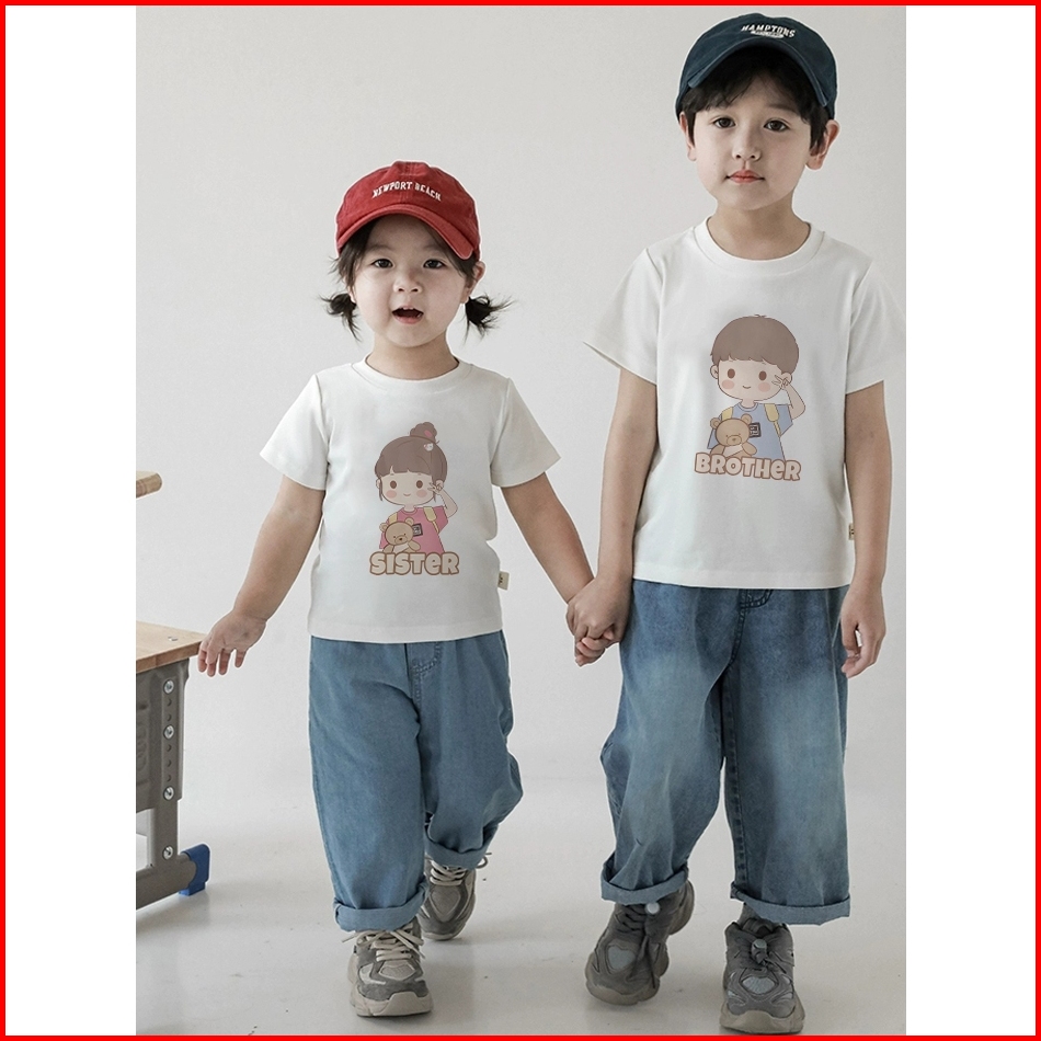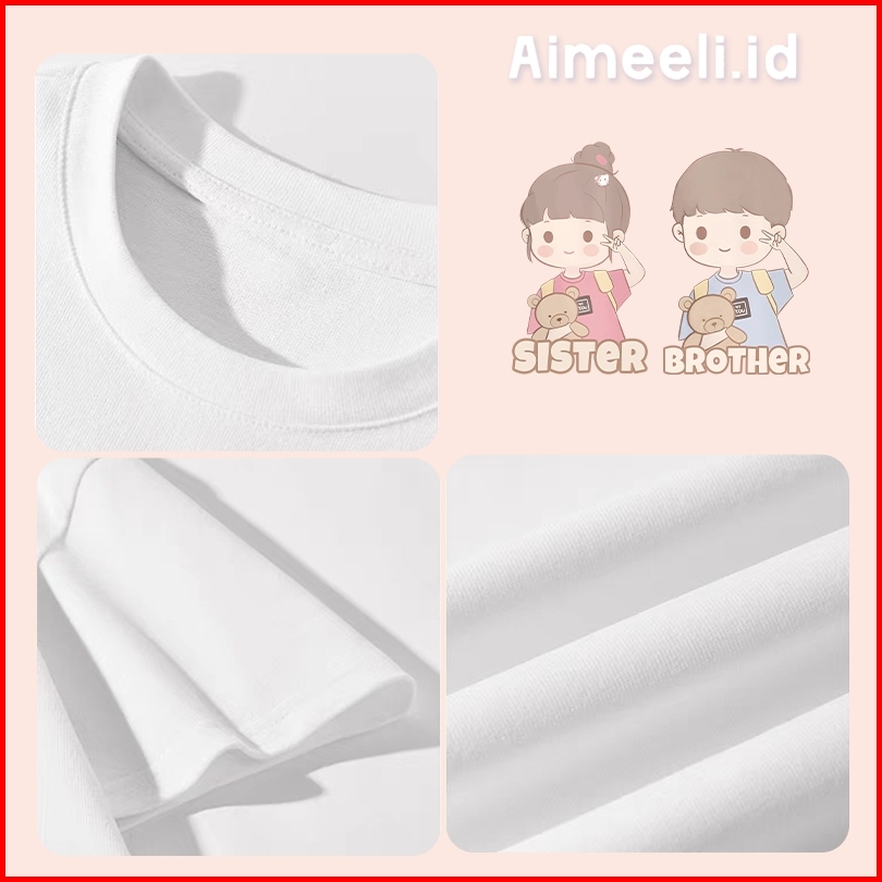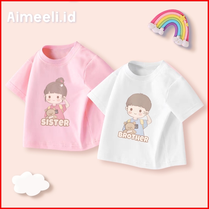 Aimeeli Baju Kaos Atasan Anak Perempuan Cute Sister Brother T-shirt Terbaru Import 2-12 Tahun