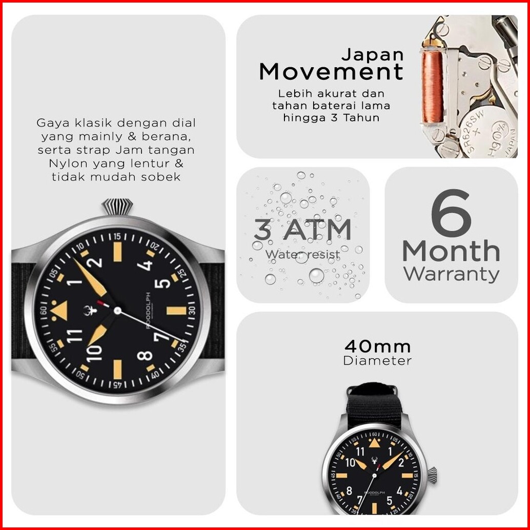 Roodolph Watch - Roadpilot Silver Jam Tangan Analog Pria Men Watch