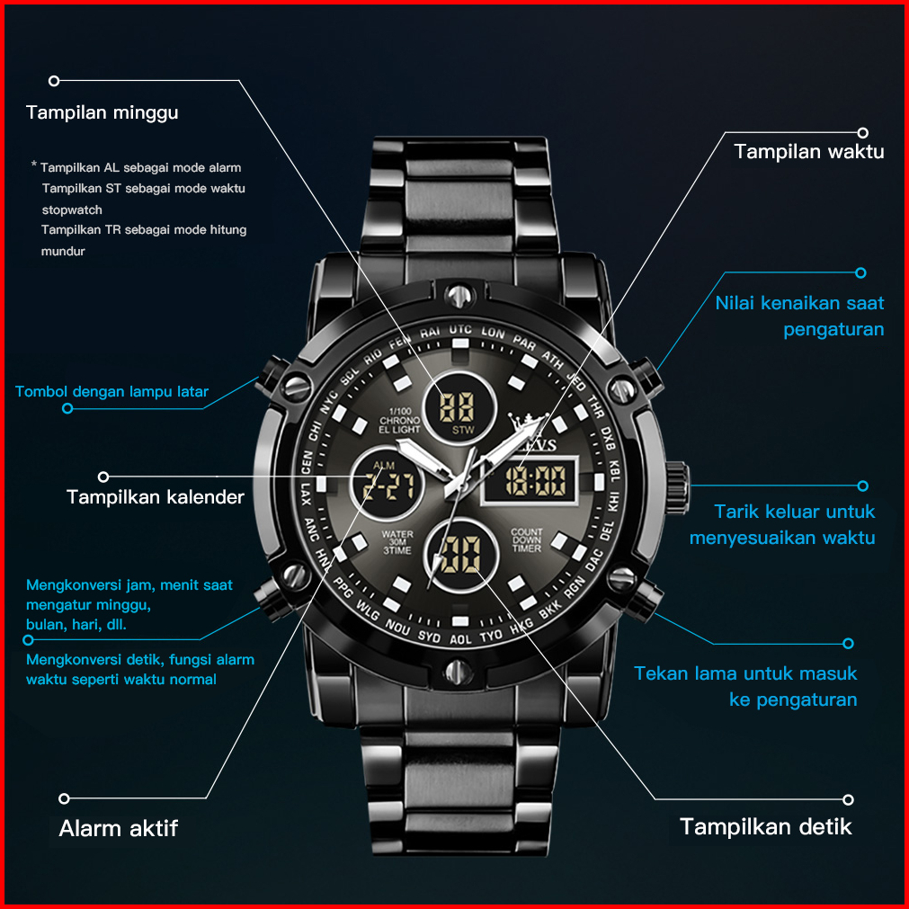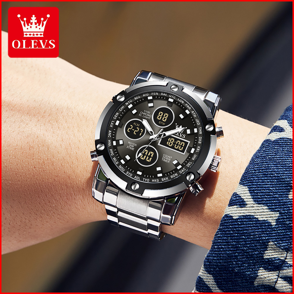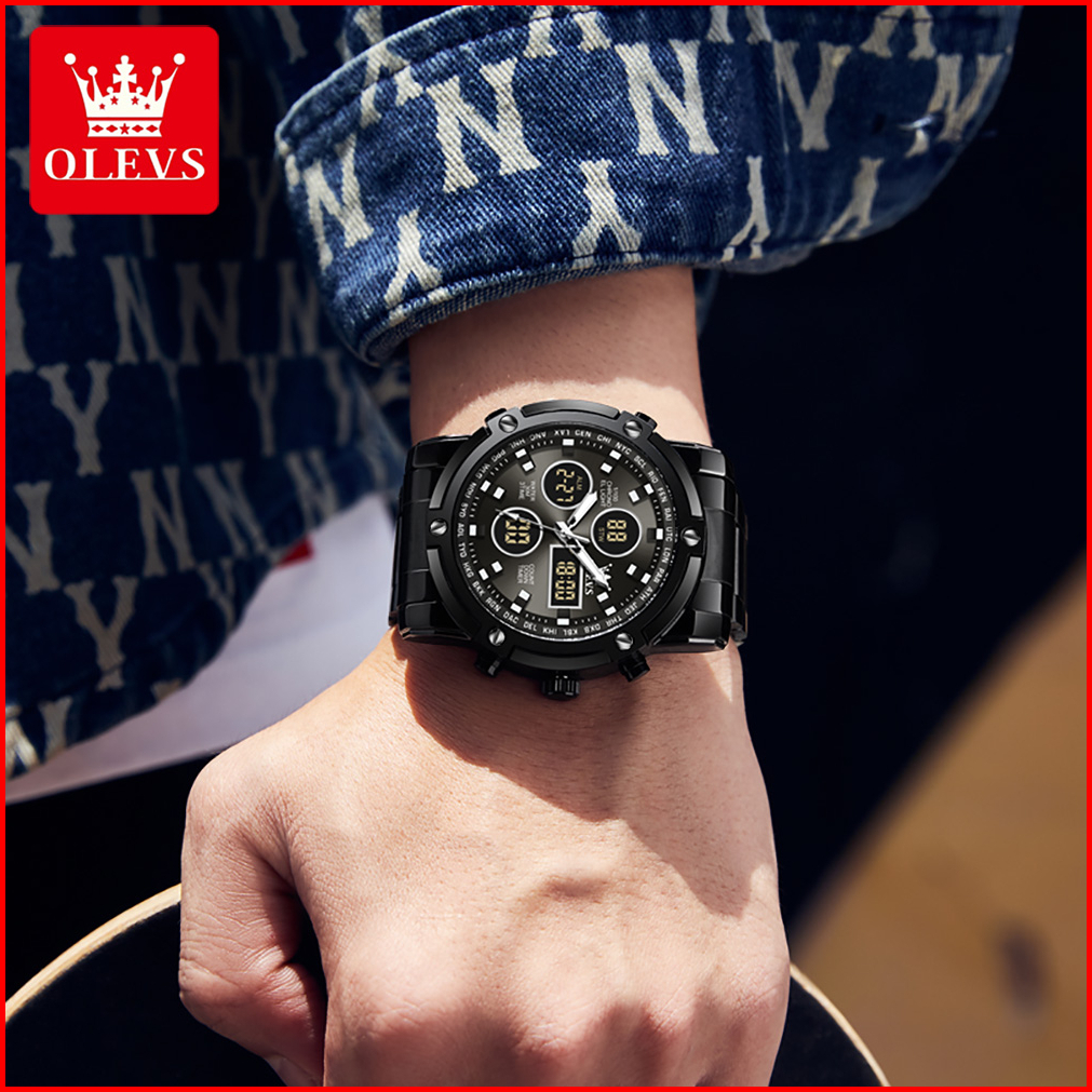 Olevs Jam Tangan Pria Anti Air Original Anti Karat Silikon Luxury Bercahaya Kalender Quartz Watch Men 1106