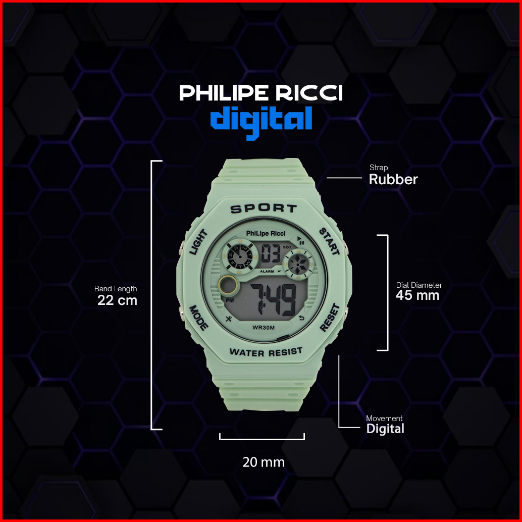 Philipe Ricci Jam Tangan Pria Wanita Digital Unisex Anti Air Terbaru Modern Water Resist 1931 Free Box