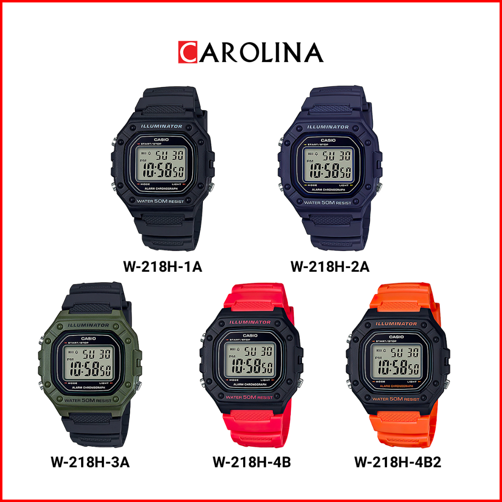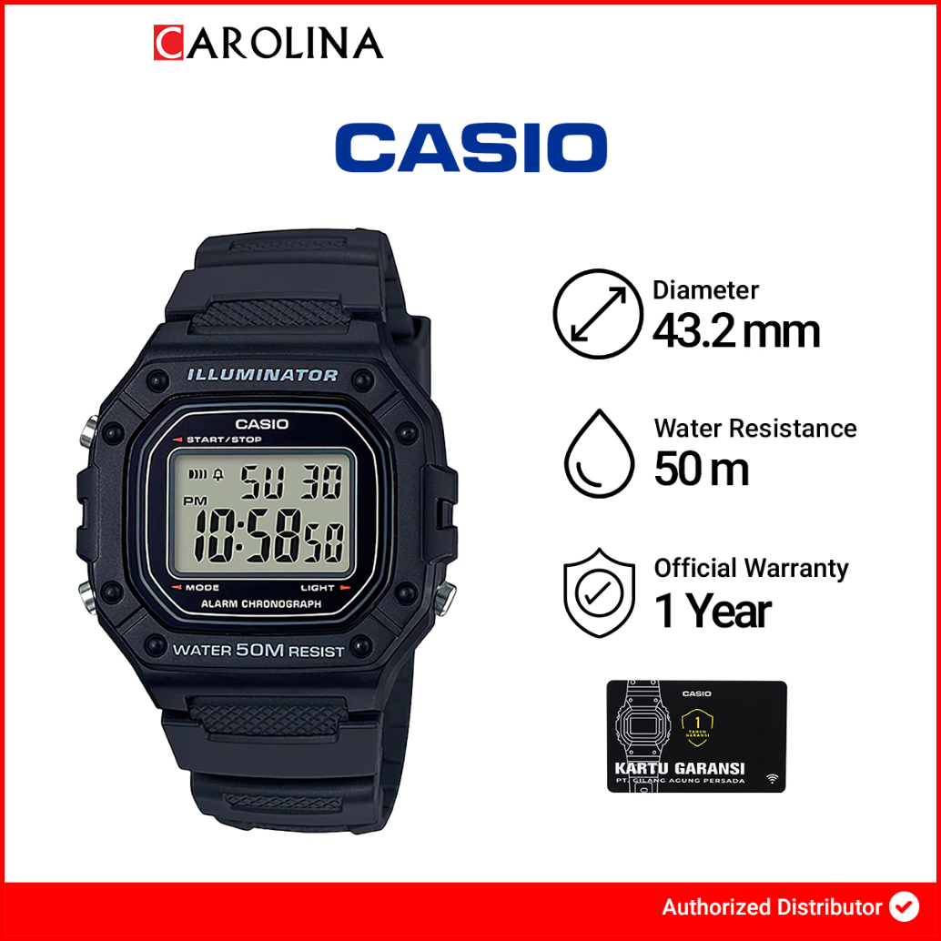 Jam Tangan Pria Casio W-218h-1a Digital Dial Black Resin Band