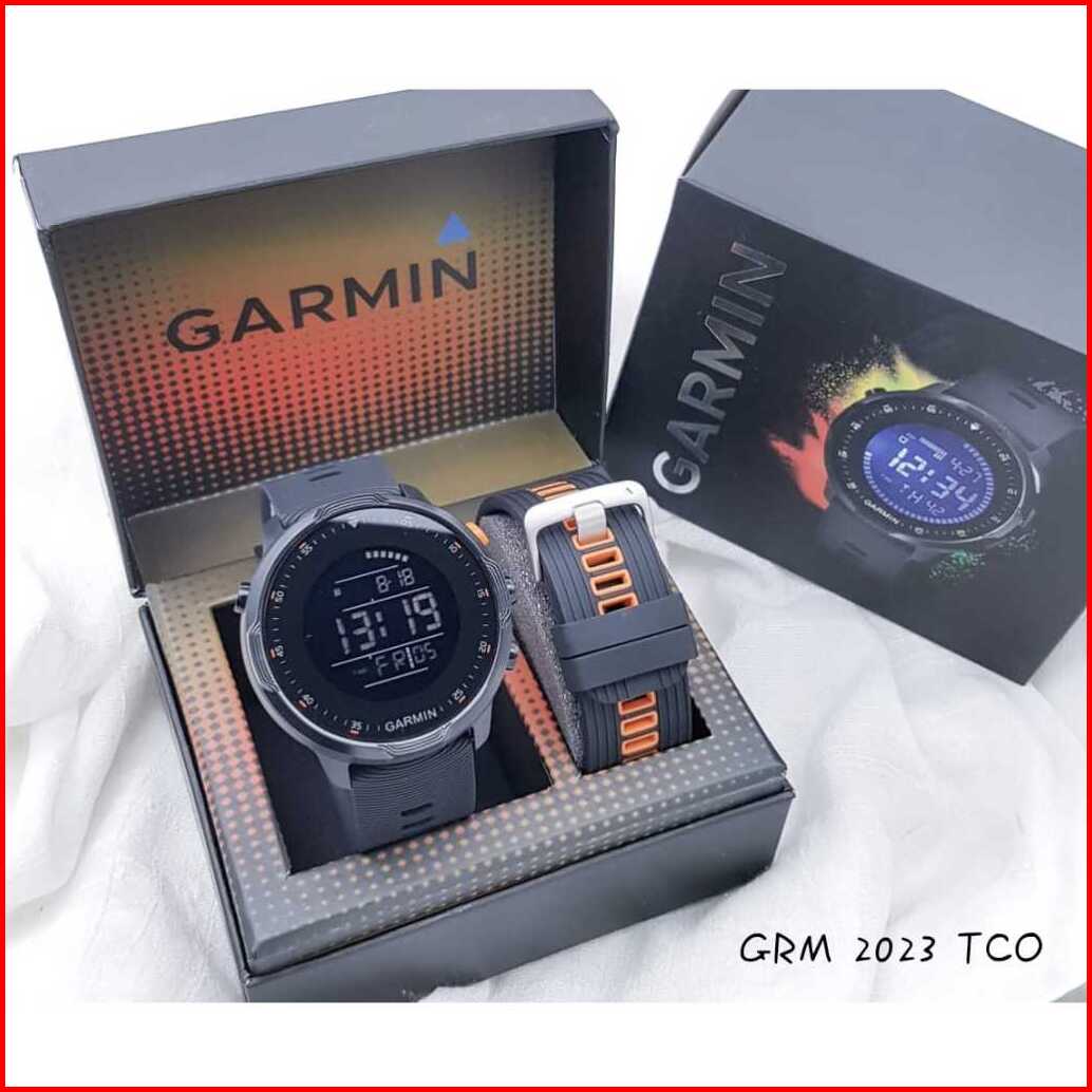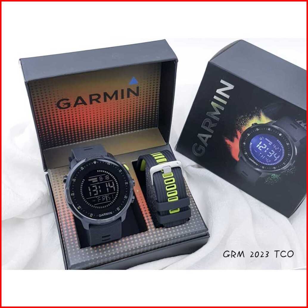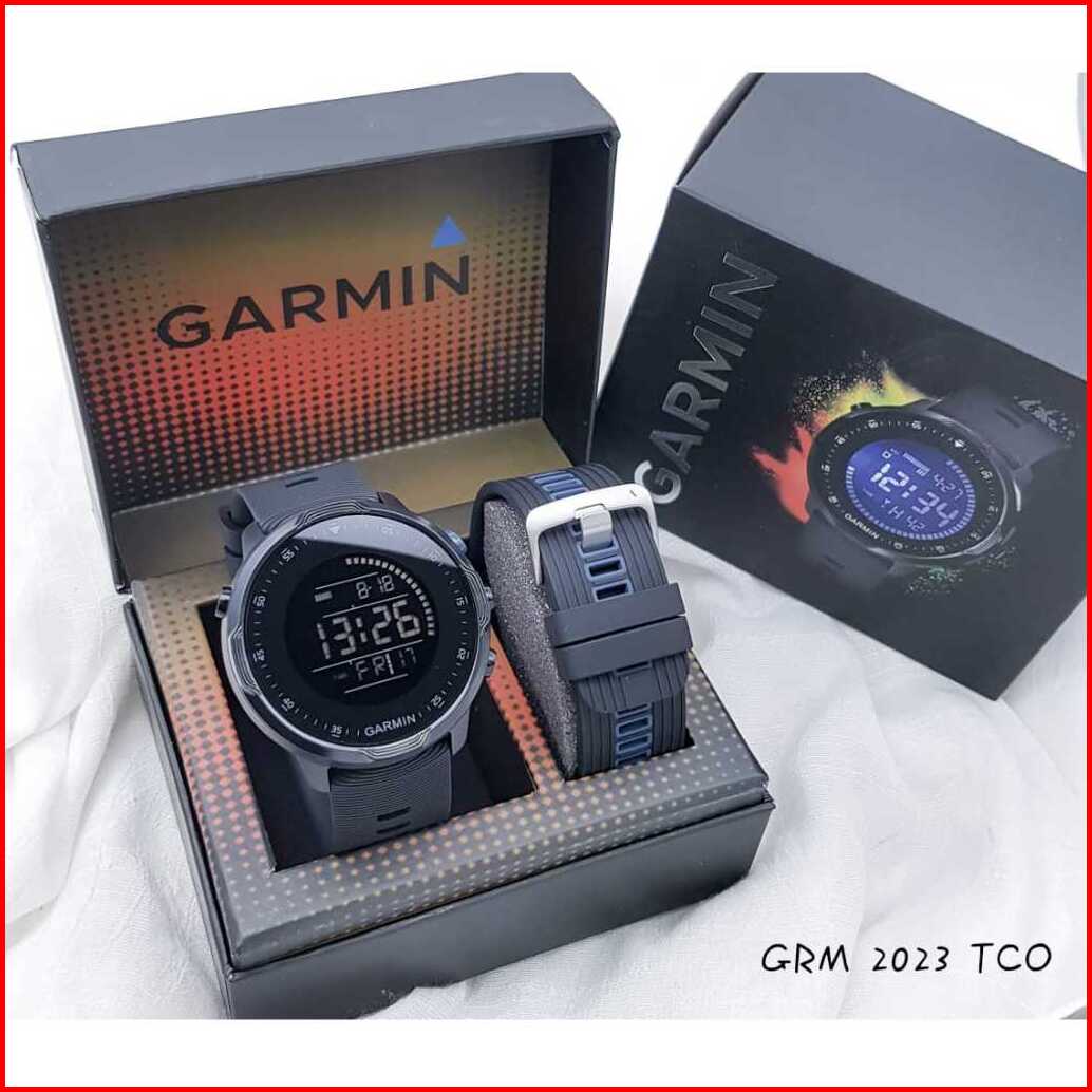 Jam Tangan Pria Garmin Digital Tali Rubber Free Rubber Cadangan Body Bulat Tanggal Hari Aktif Box Exclusive