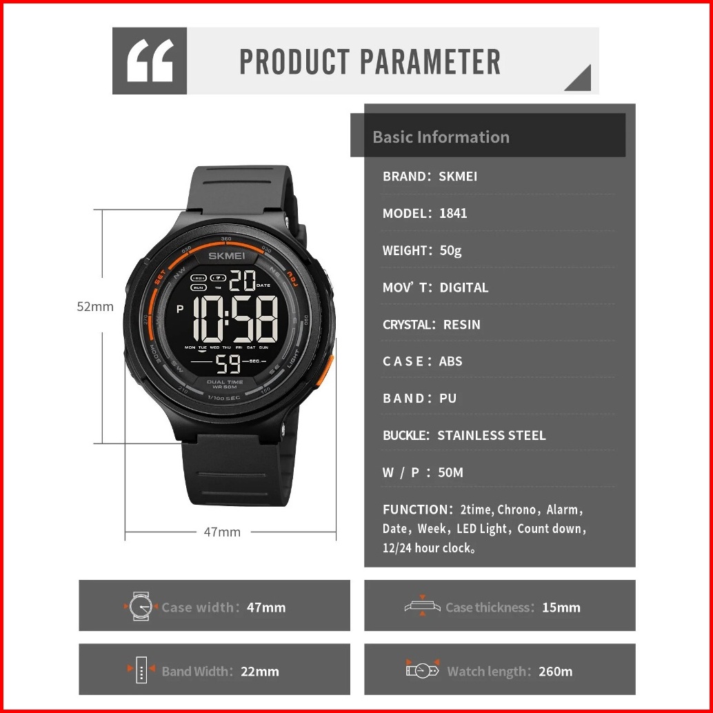 Jam Tangan Digital Pria Skmei 1841 Black Water Resistance 30m