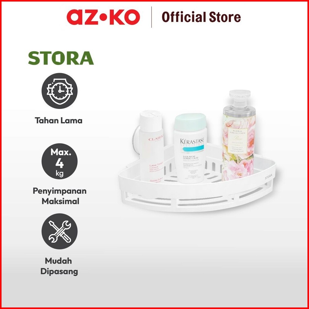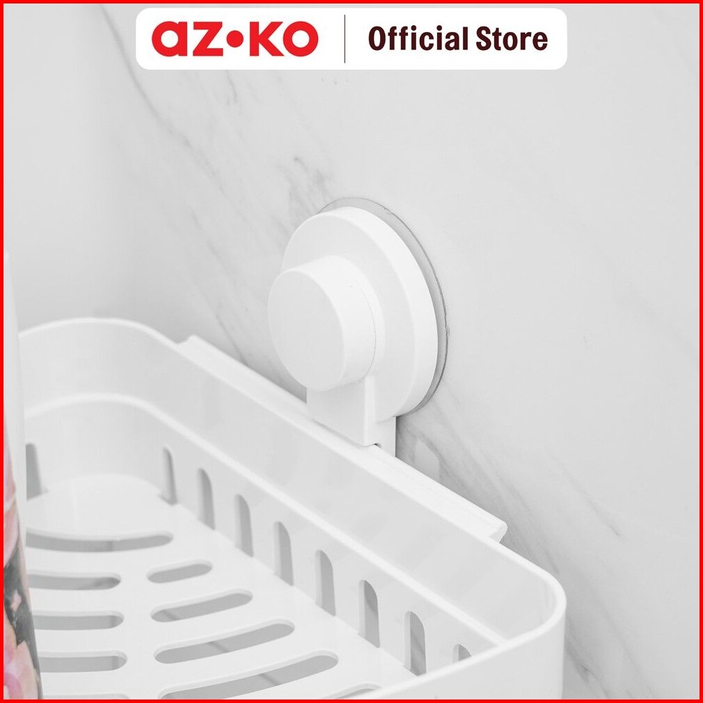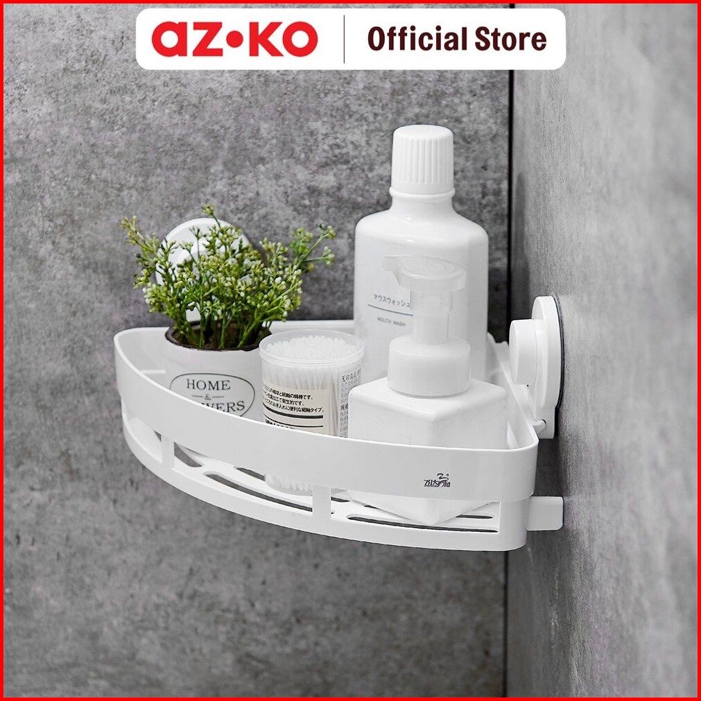 Azko Stora Rak Sudut Kamar Mandi - Putih Shower Wall Shelf Corner Rak Tembok Serbaguna Aksesoris Kamar Mandi Furniture I