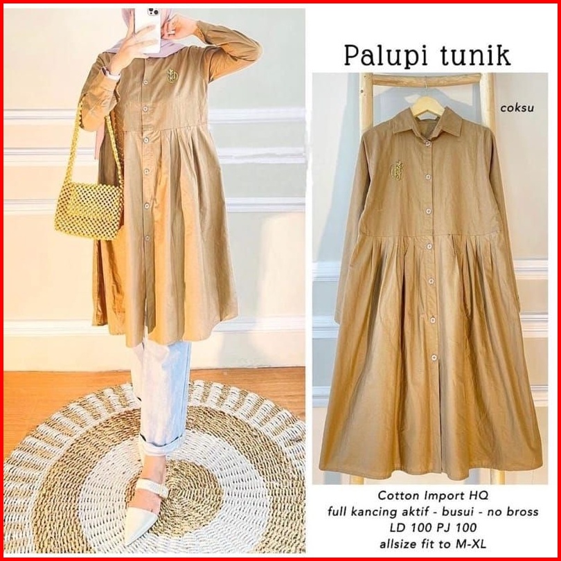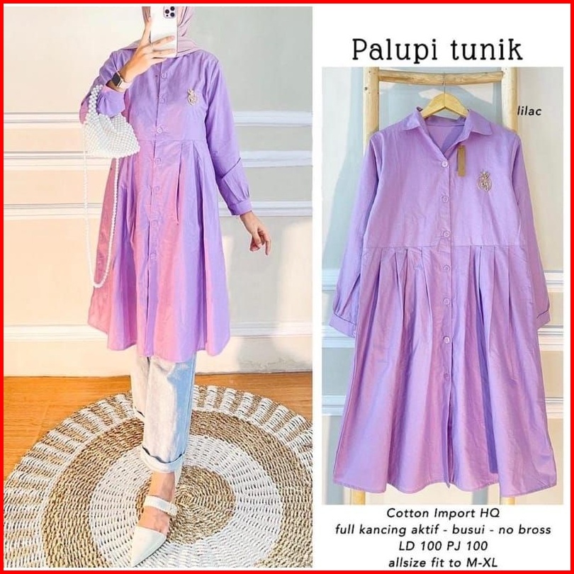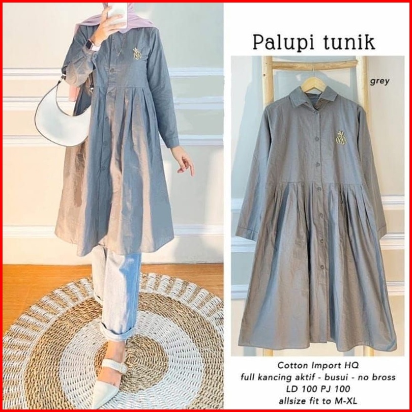Long Tunik Fulk Kancing M L Xl Palupi Tunik Rempel Tunik