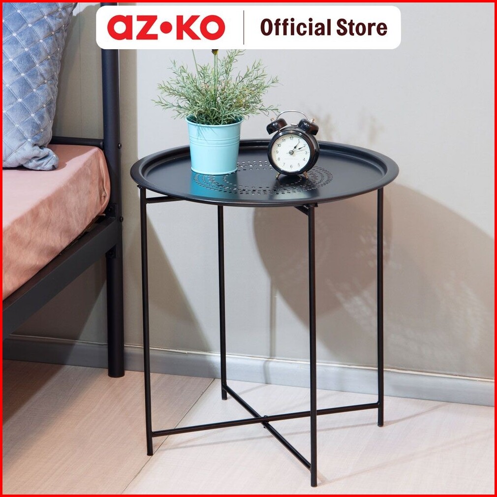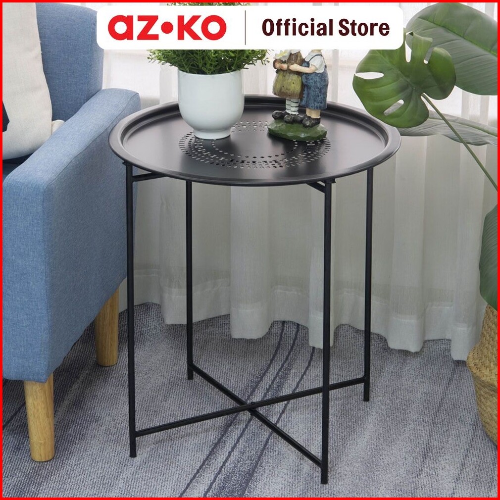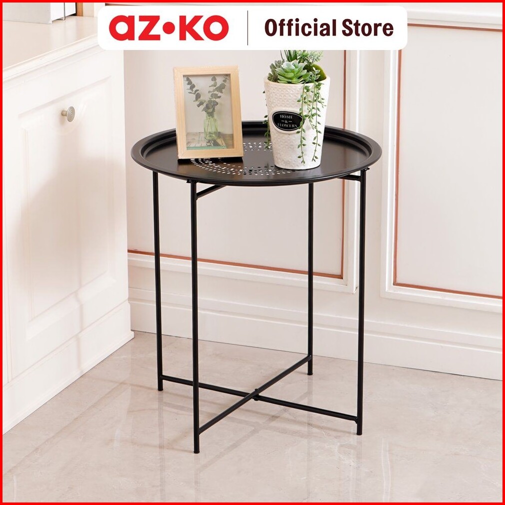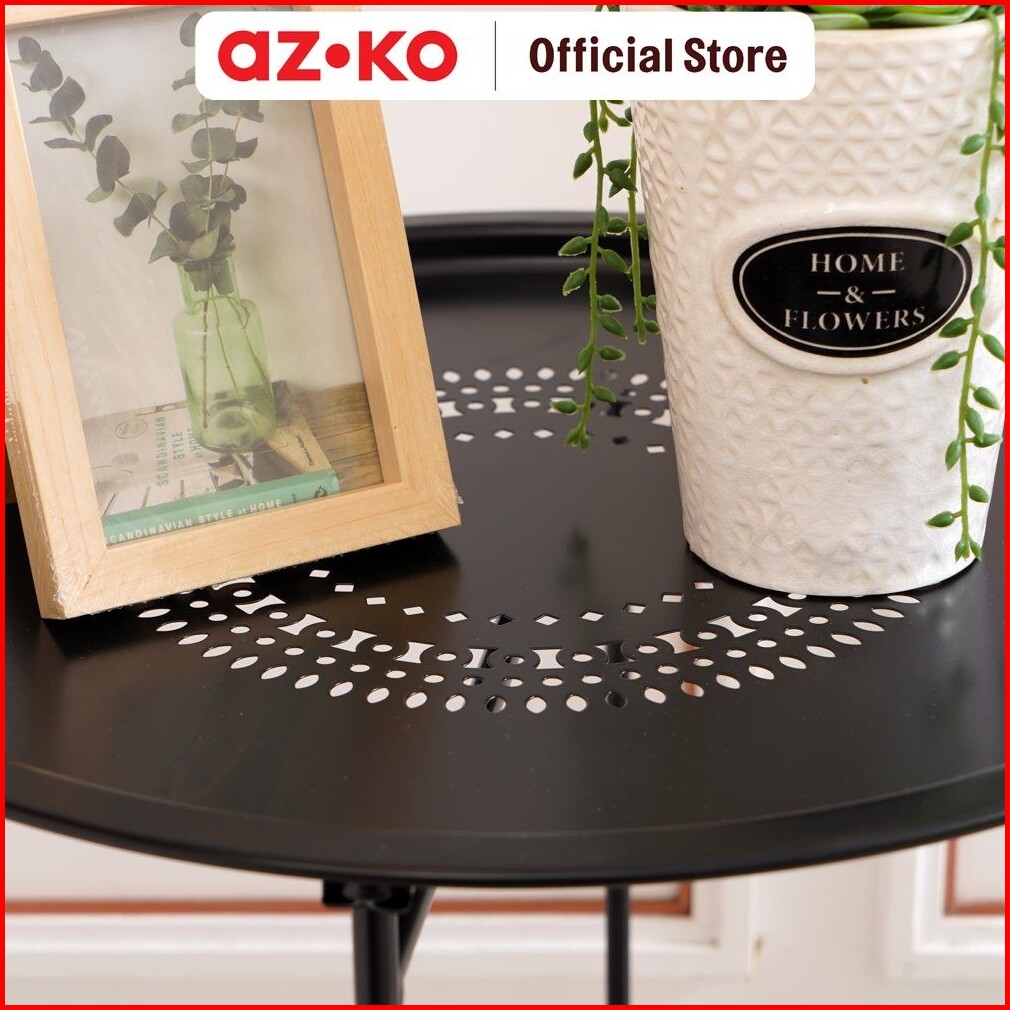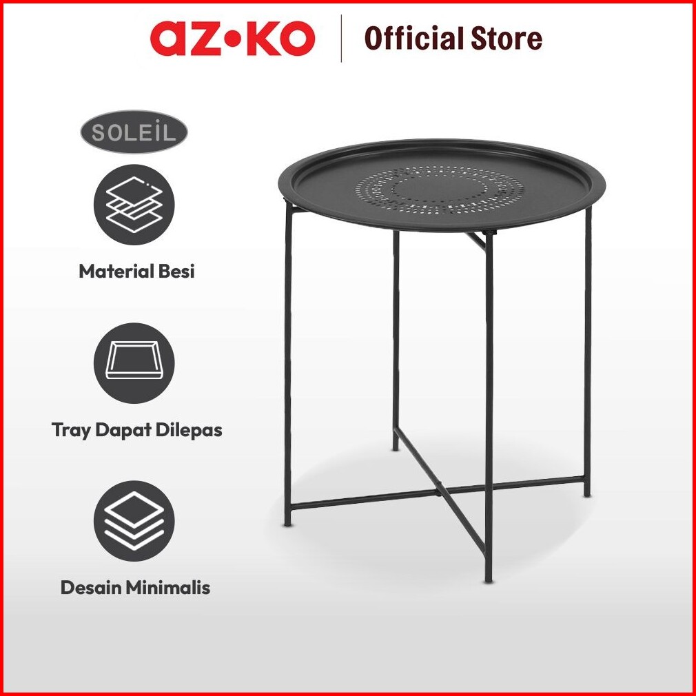 Azko Soleil Meja Teras Dengan Tray - Hitam Meja Luar Ruangan Garden Table Balcony Desk Furnitur Taman Outdoor Furniture