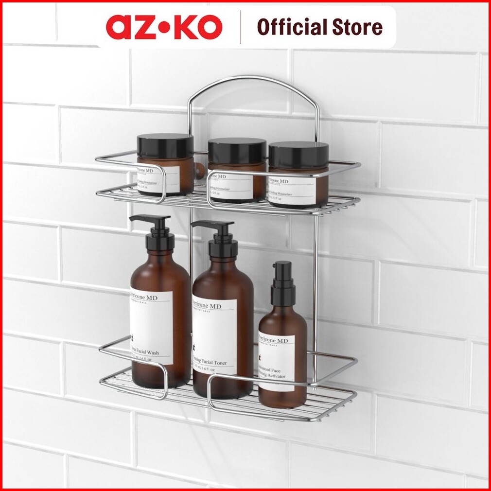 Azko Stora Rak Dinding Kamar Mandi Wk120317 - Silver Shower Wall Shelf Organizer Tempat Sampo Sabun Rak Tembok Serbaguna