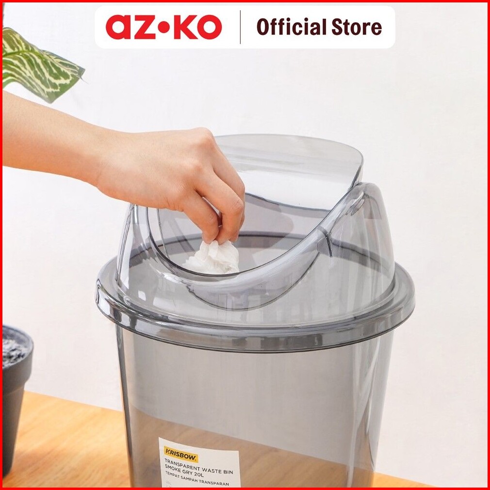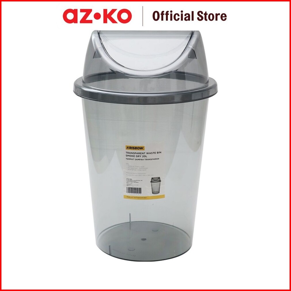 Azko Krisbow 20 Ltr Tempat Sampah Transparan - Abu-abu Smoke Tong Sampah Wadah Pembuangan Alat Kebersihan Trash Bin