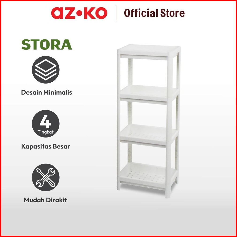 Azko Stora Rak Plastik 4 Tingkat - Putih Rak Serbaguna Rak Plastik Storage Rack Home Organizer