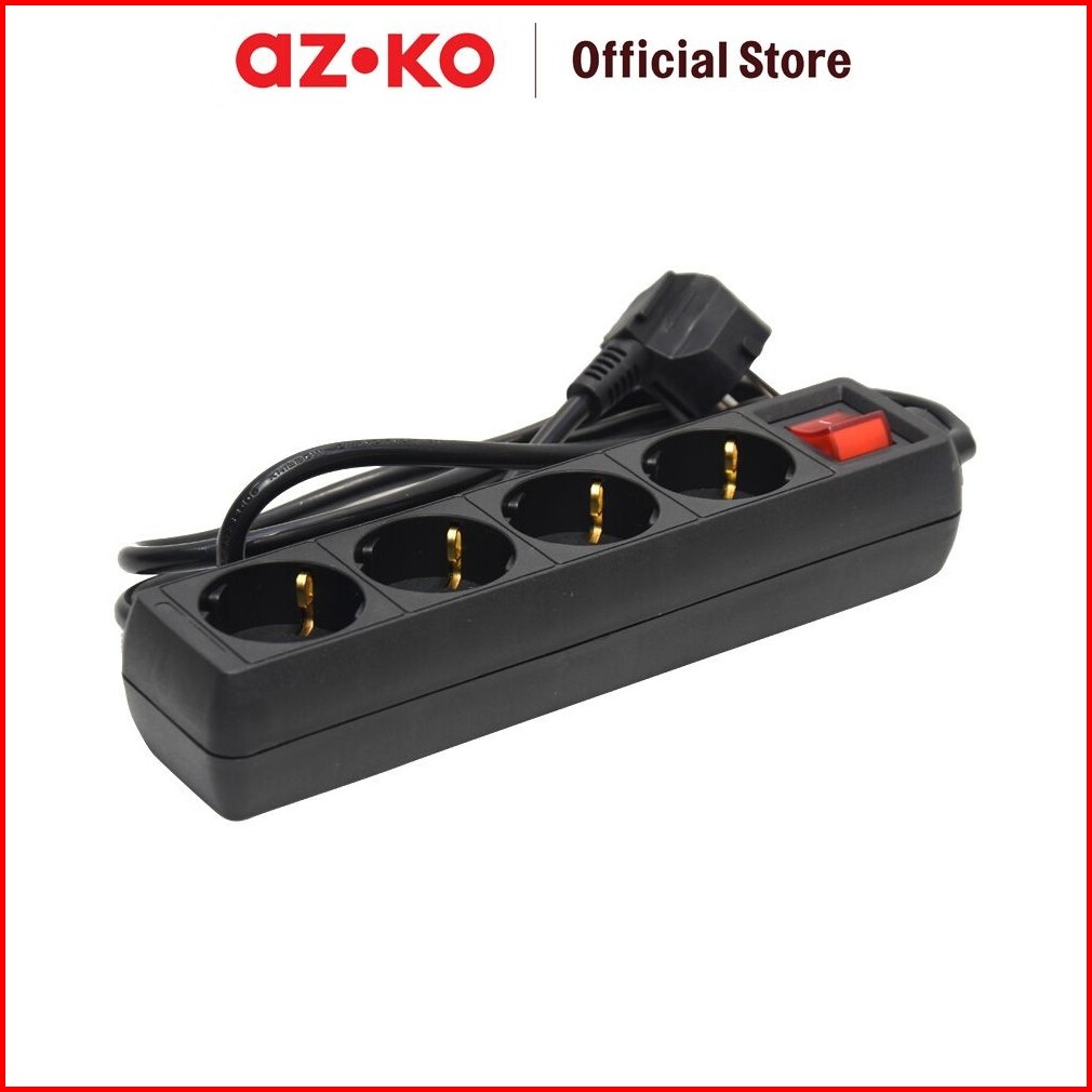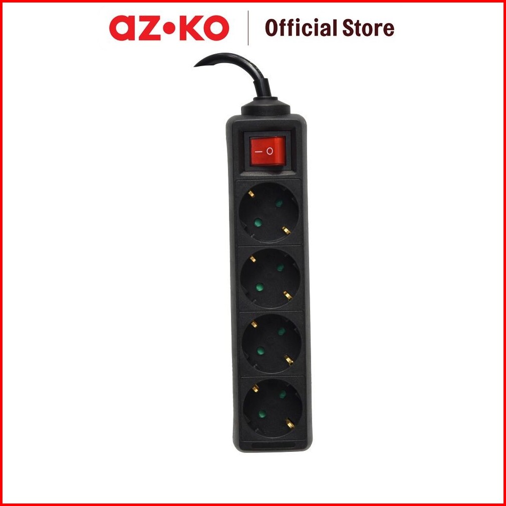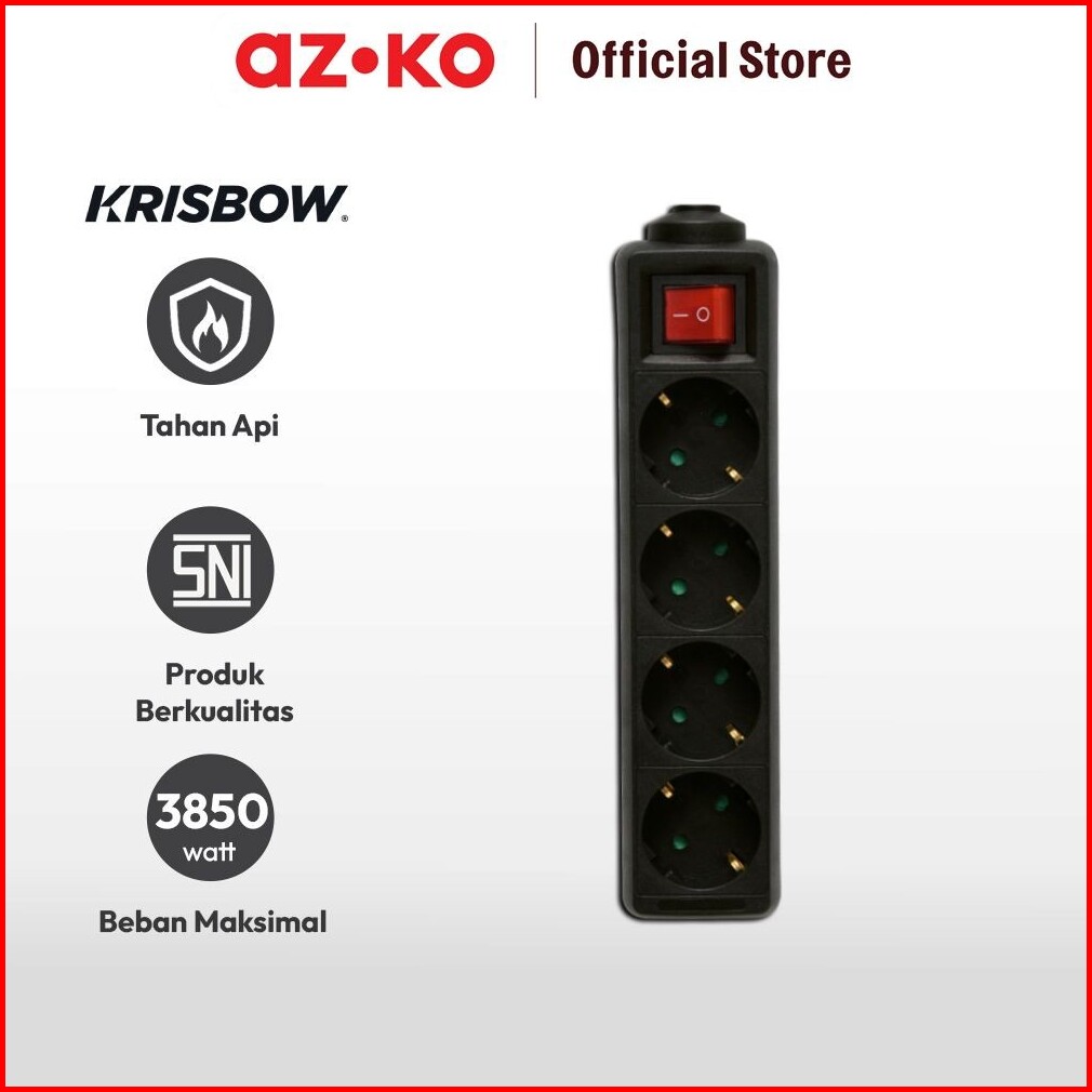 Azko Krisbow Stop Kontak 4 Socket - Hitam Electric Socket Terminal Colokan Listrik Peralatan Elektronik Extension Kotak