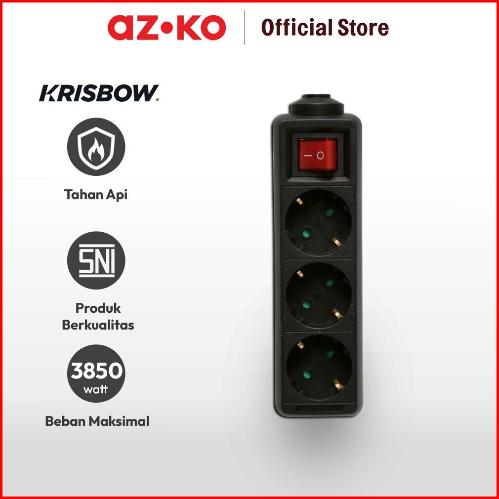 Azko Krisbow Stop Kontak 3 Socket Kf-b-03kp - Hitam Electric Socket Terminal Colokan Listrik Peralatan Elektronik Extens