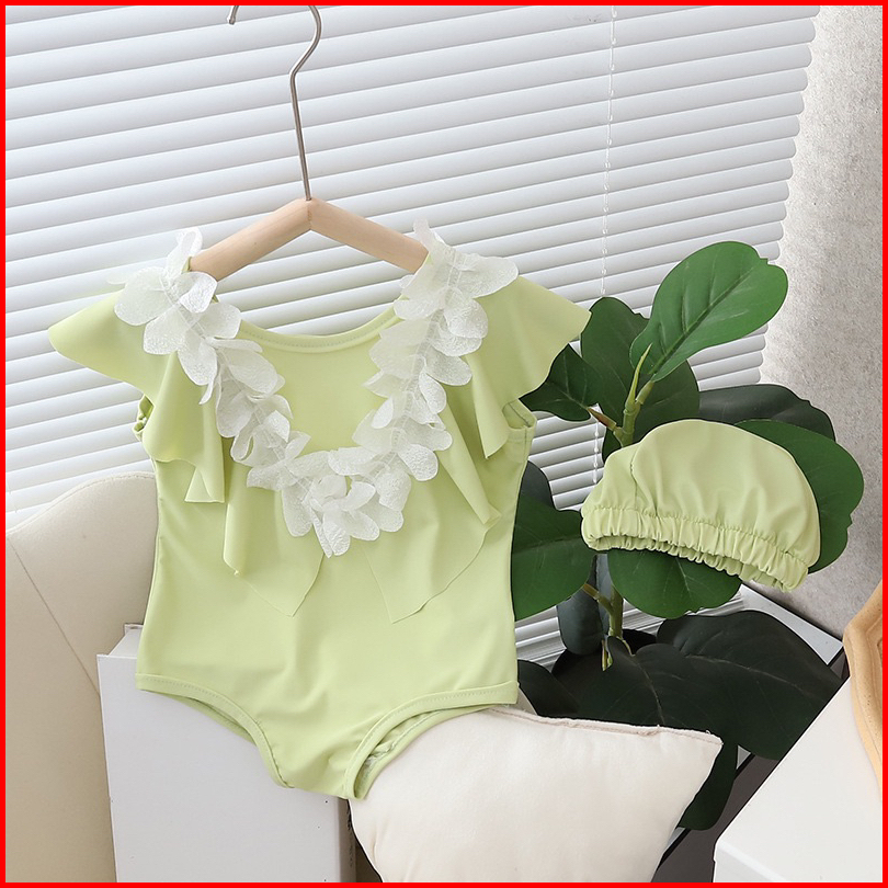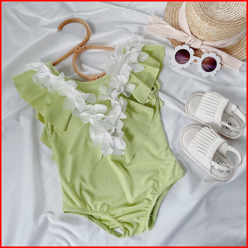 2-7tahun Baju Renang Hijau Bunga Swimsuit Ruffle Anak Perempuan