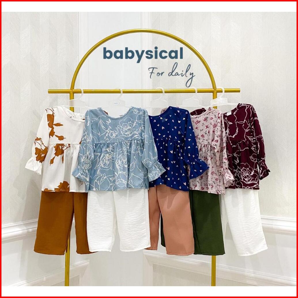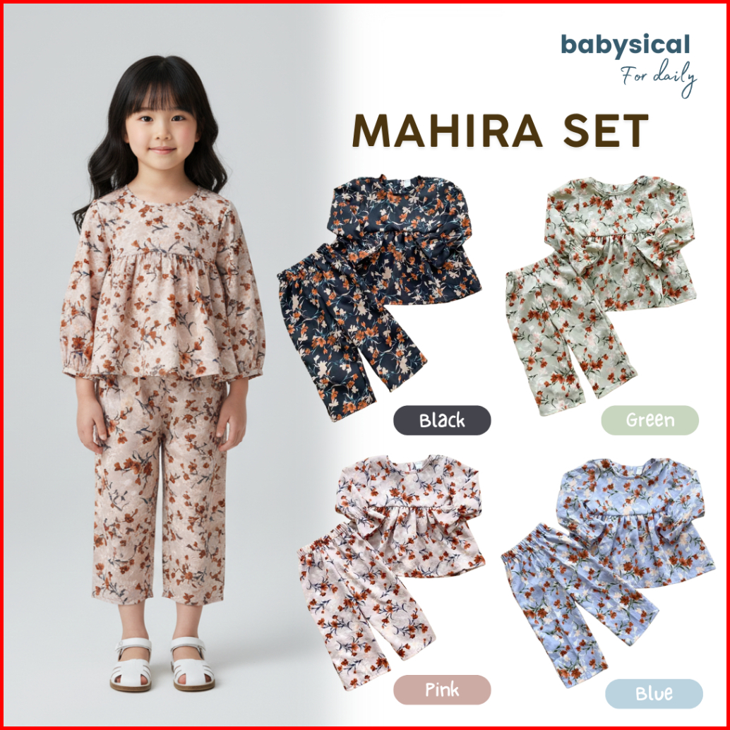 Babysical 1-6 Tahun Mahira Set Setelan Baju Anak Perempuan Muslim Stelan Gamis Blouse Panjang Celana Panjang Setcel Anak