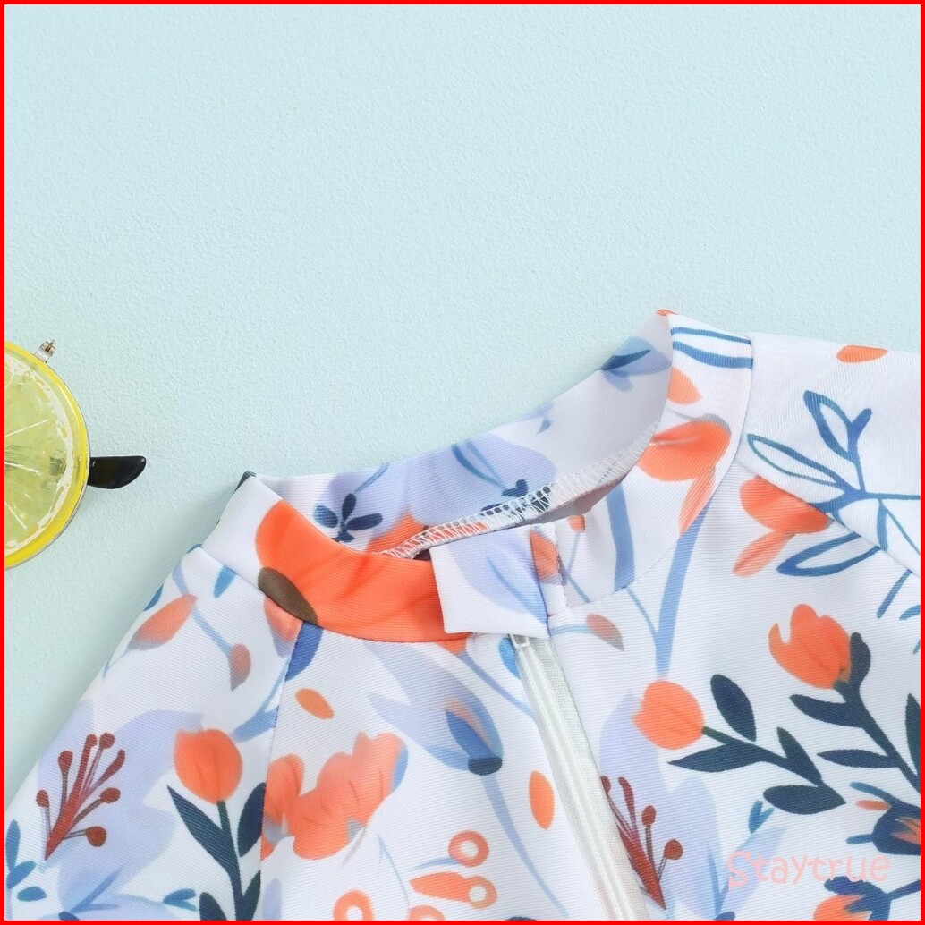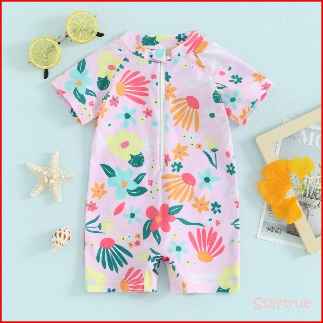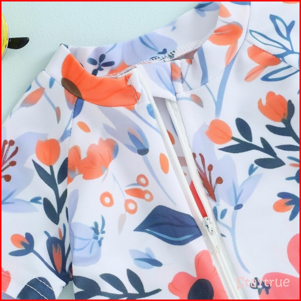 Baju Renang Pelindung Ruam Balita Perempuan Baju Monyet Ritsleting Lengan Pendek Motif Bunga Baju Renang Anak Pakaian Re