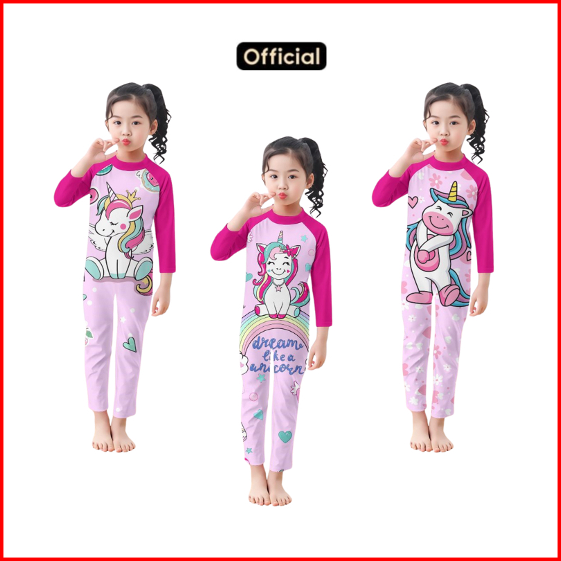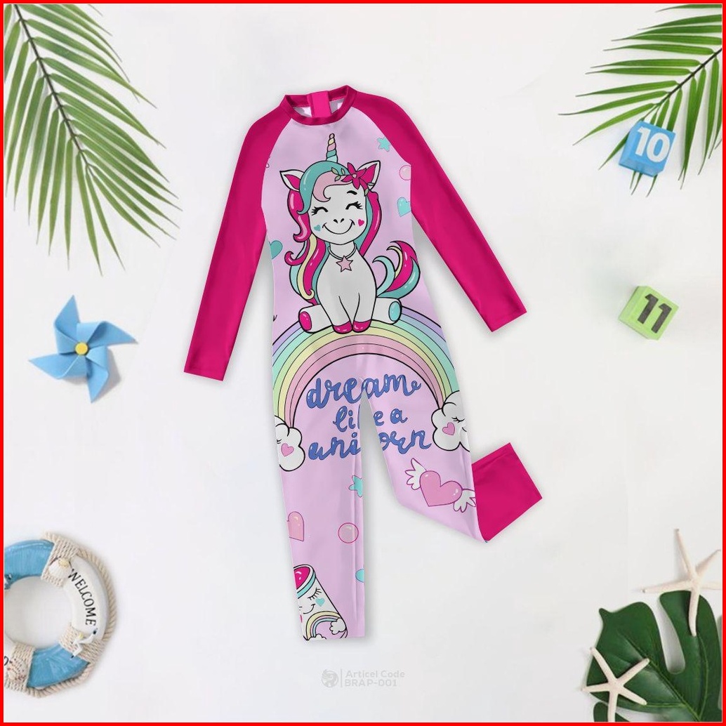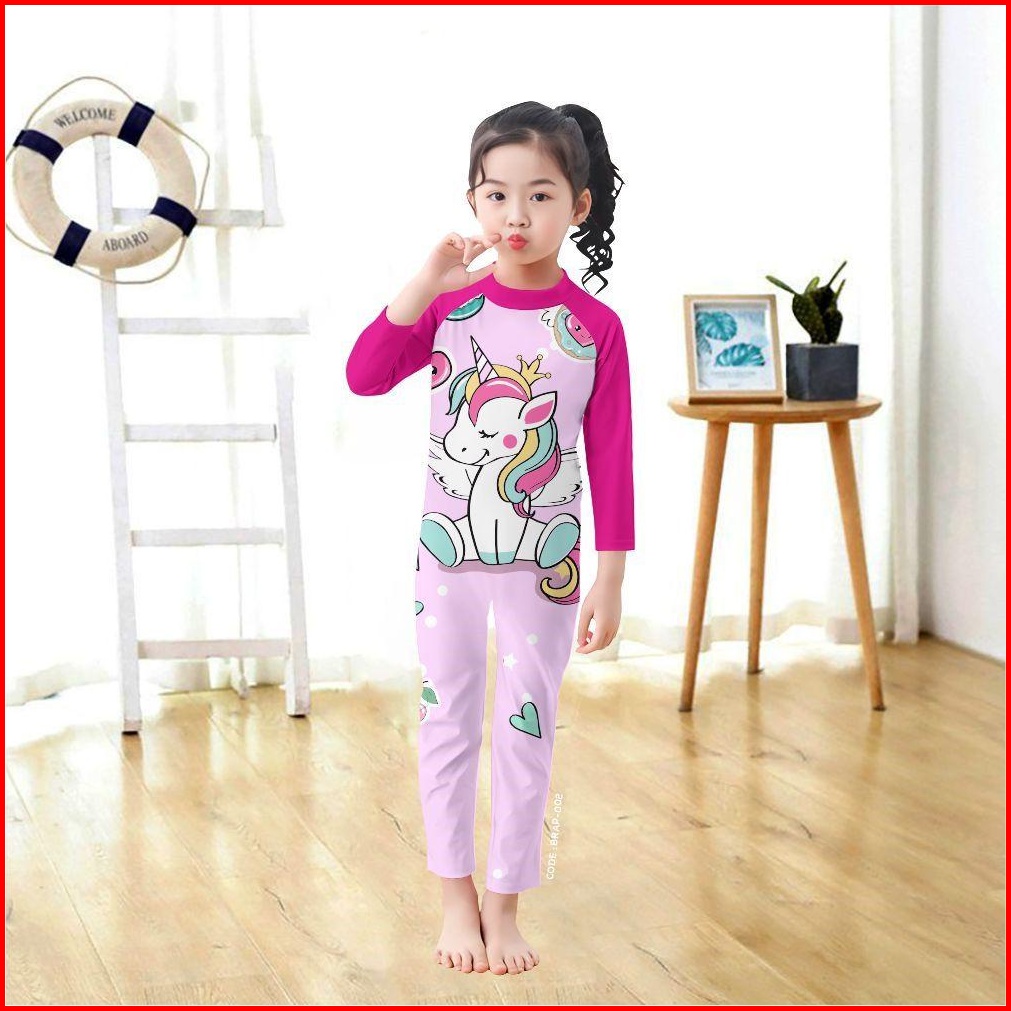 Baju Renang Anak Perempuan Tangan Panjang Lengan Lucu Motif Unicorn Set Cewek Nyaman