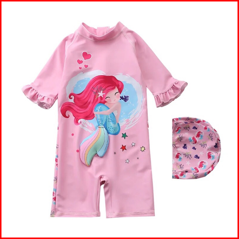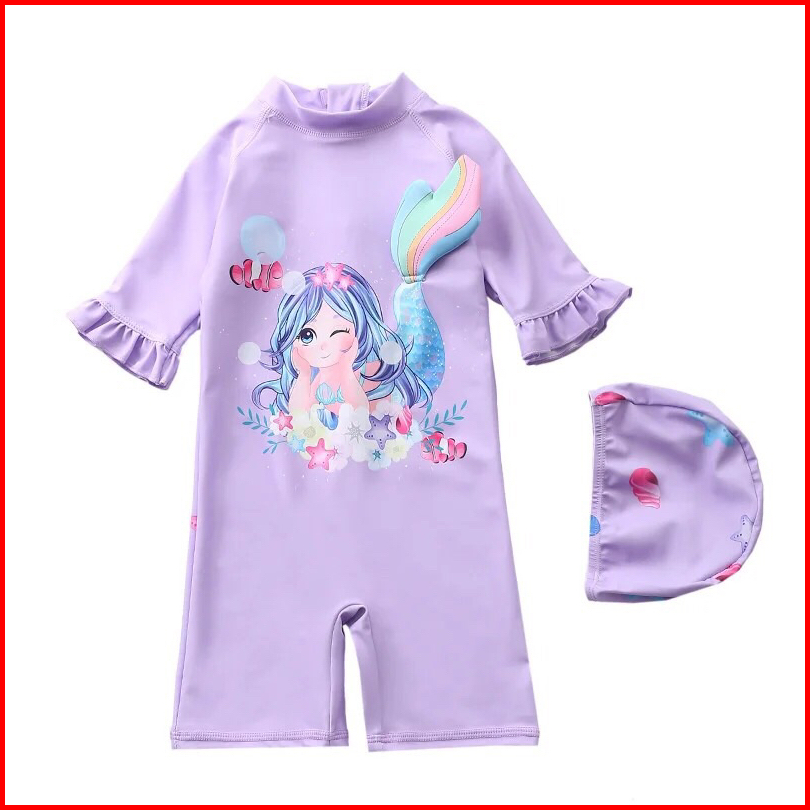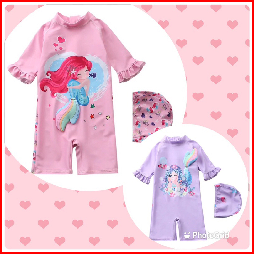 Set Baju Renang Anak Perempuan Kualitas Premium Gambar Mermaid Ariel 3d Free Topi Lucu Baju Bikini Anak Lucu Baju Swimmi
