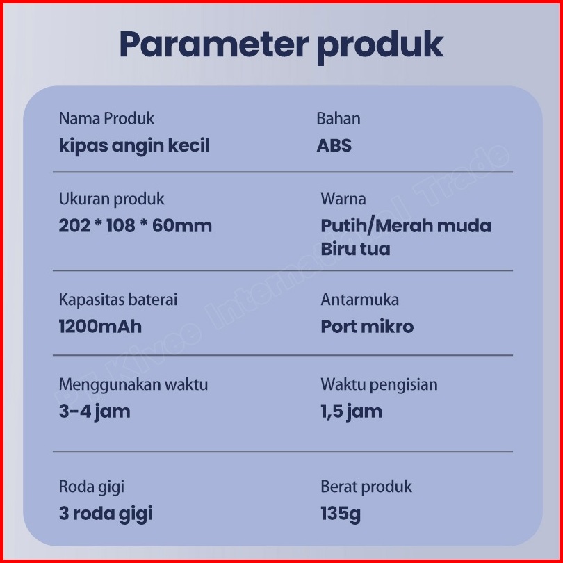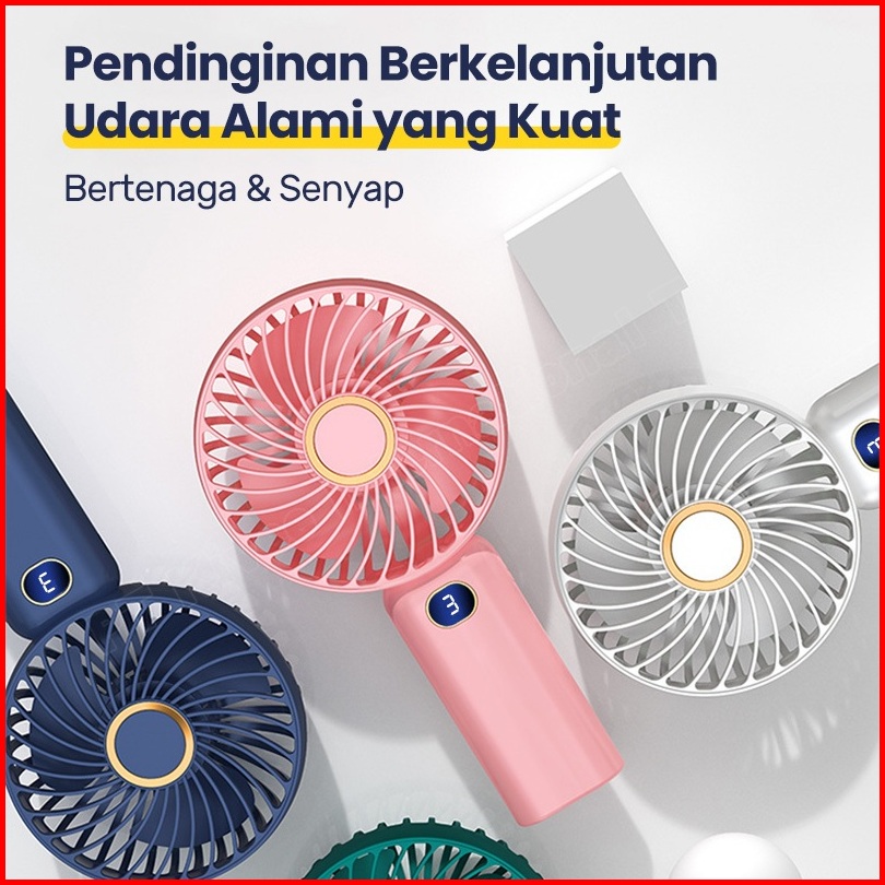 Kivee Kipas Angin Mini Portable 1200 Mah Lcd 3-speed 3-4 Jam Kerja Super Panjang