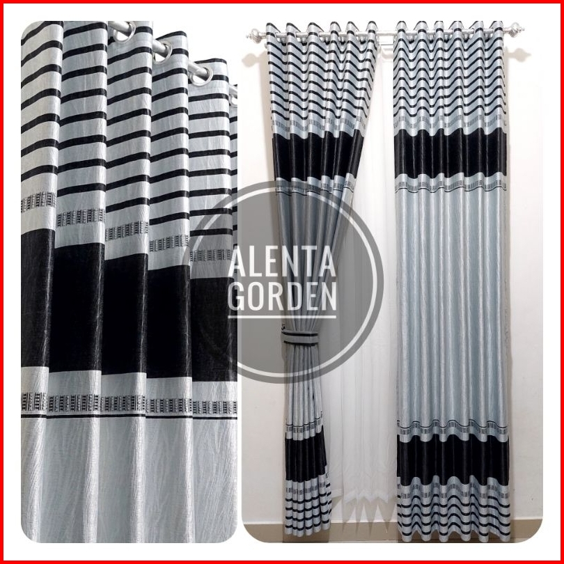 Gorden Jendela Pintu Blackout Import Motif Garis Smokring Tebal 6 Gelombang Panjang 200cm 250cm