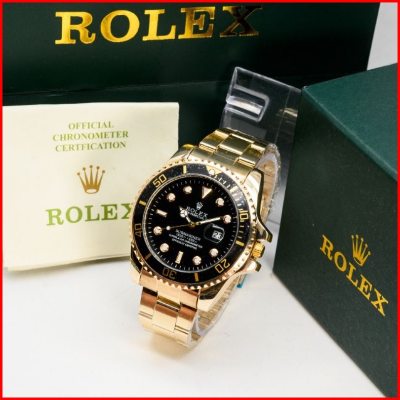 Promo Jam Tangan Pria Mewah Anti Air Rolex Submariner Premium Aaa Mode Bulat Analog Case Putar Tanggal Aktif Tali Rantai