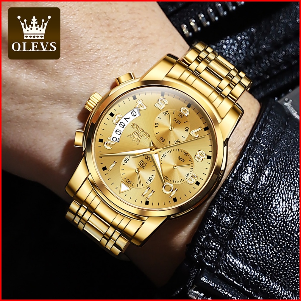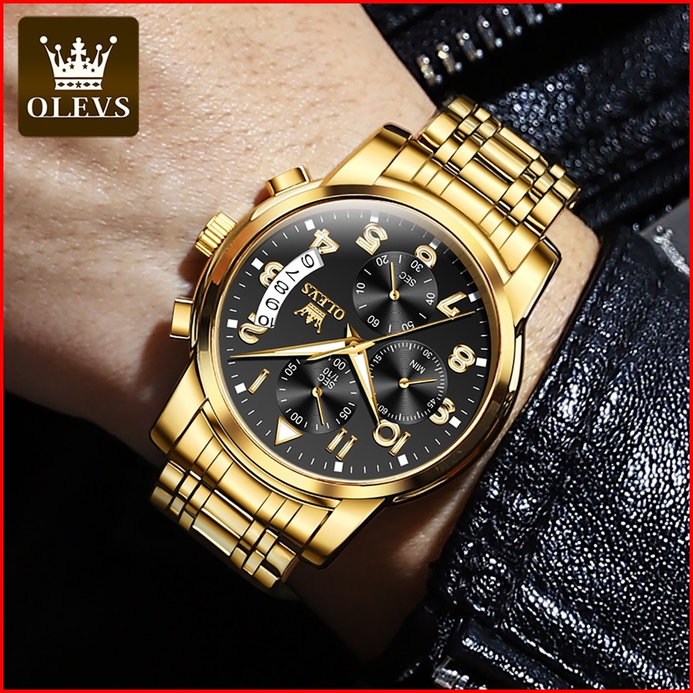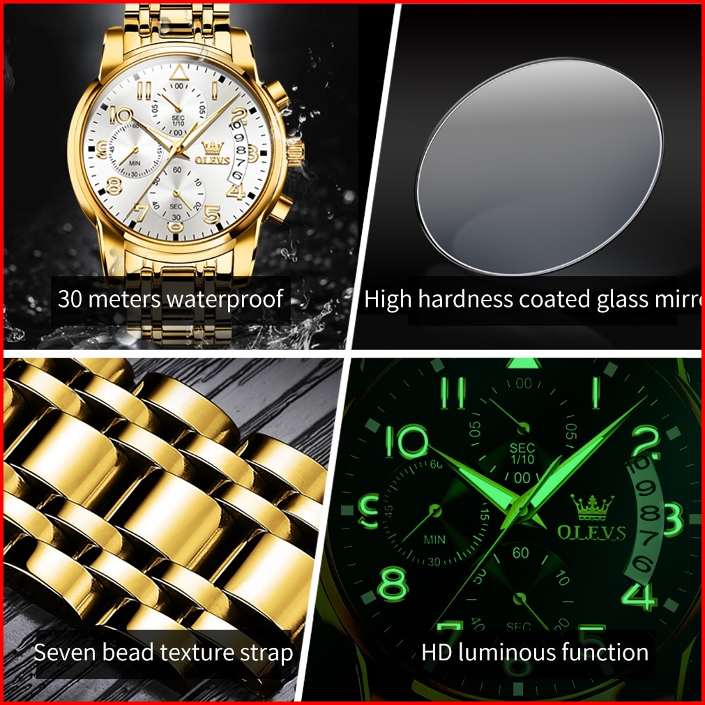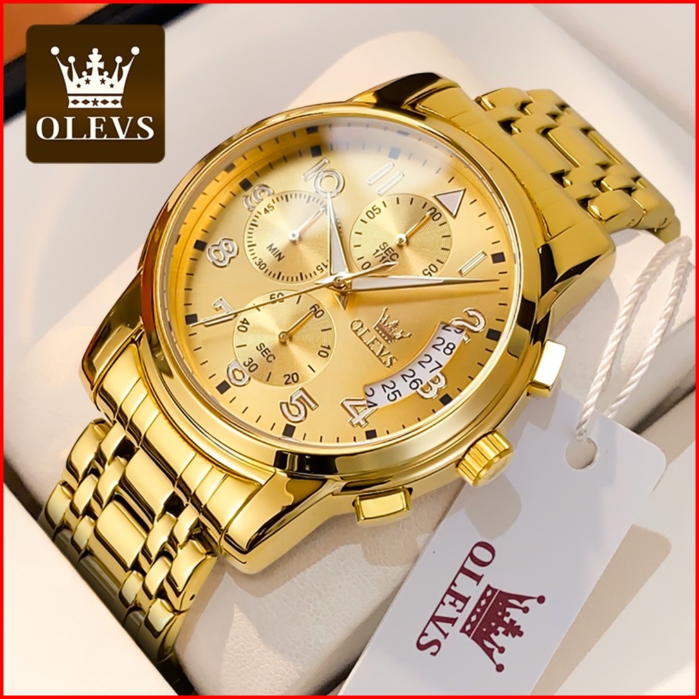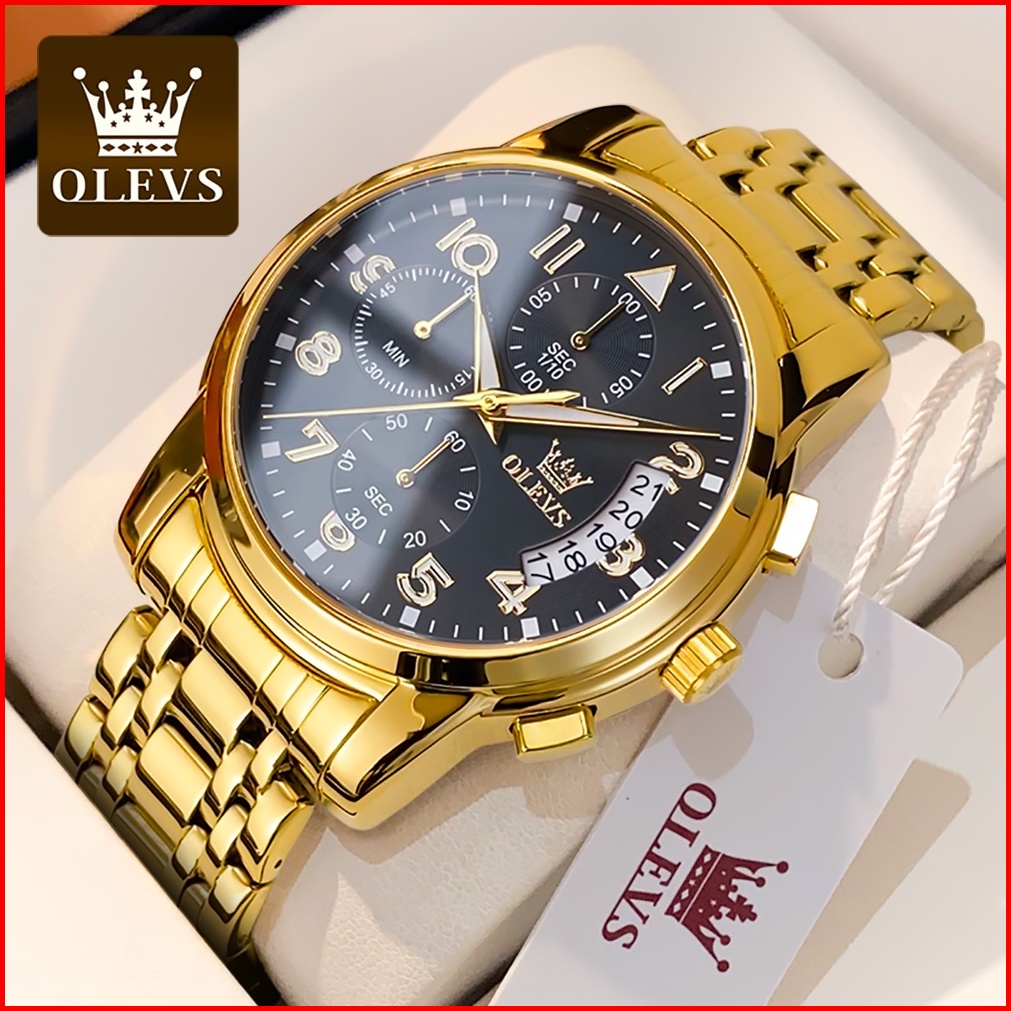 Olevs Jam Tangan Pria Anti Air Original Cowok Terbaru Tahan Luxury Led Sport Analog Chronograph Stainless Steel Watch Me