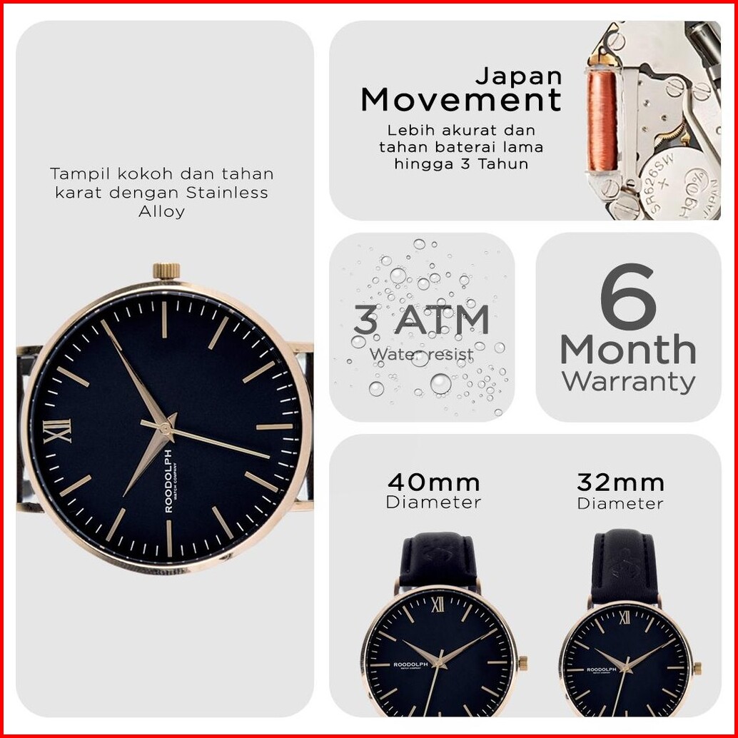 Roodolph Watch - Erudite Black 40mm Jam Tangan Analog Pria Men Watch