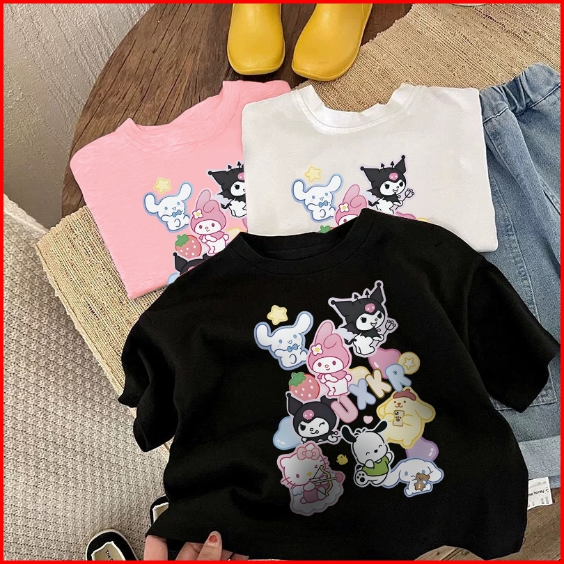 Laozy 2-12 Tahun Kaos Anak Kuromi Import Korea Style Perempuan Baju Atasan T Shirt Cotton