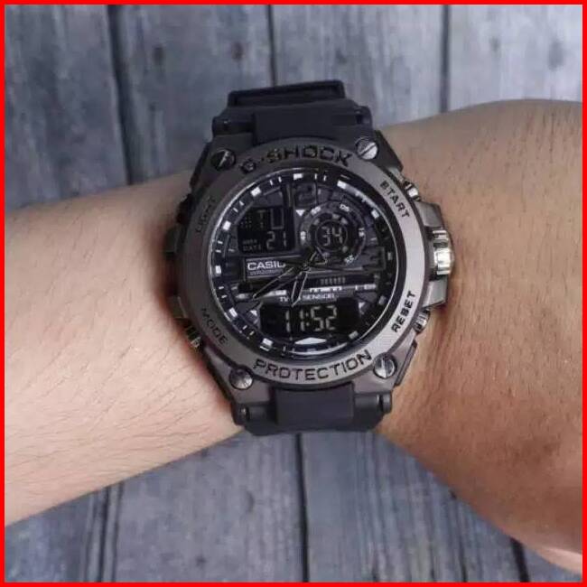 H001 Jam Tangan Pria Casio G Shock Besi Anti Air Analog Dan Digital Keren Mewah Free Baterai