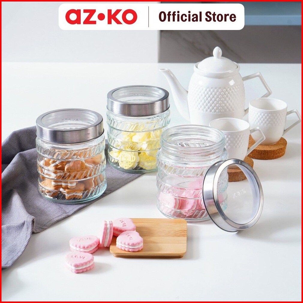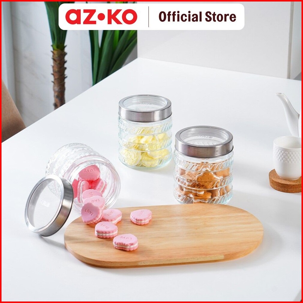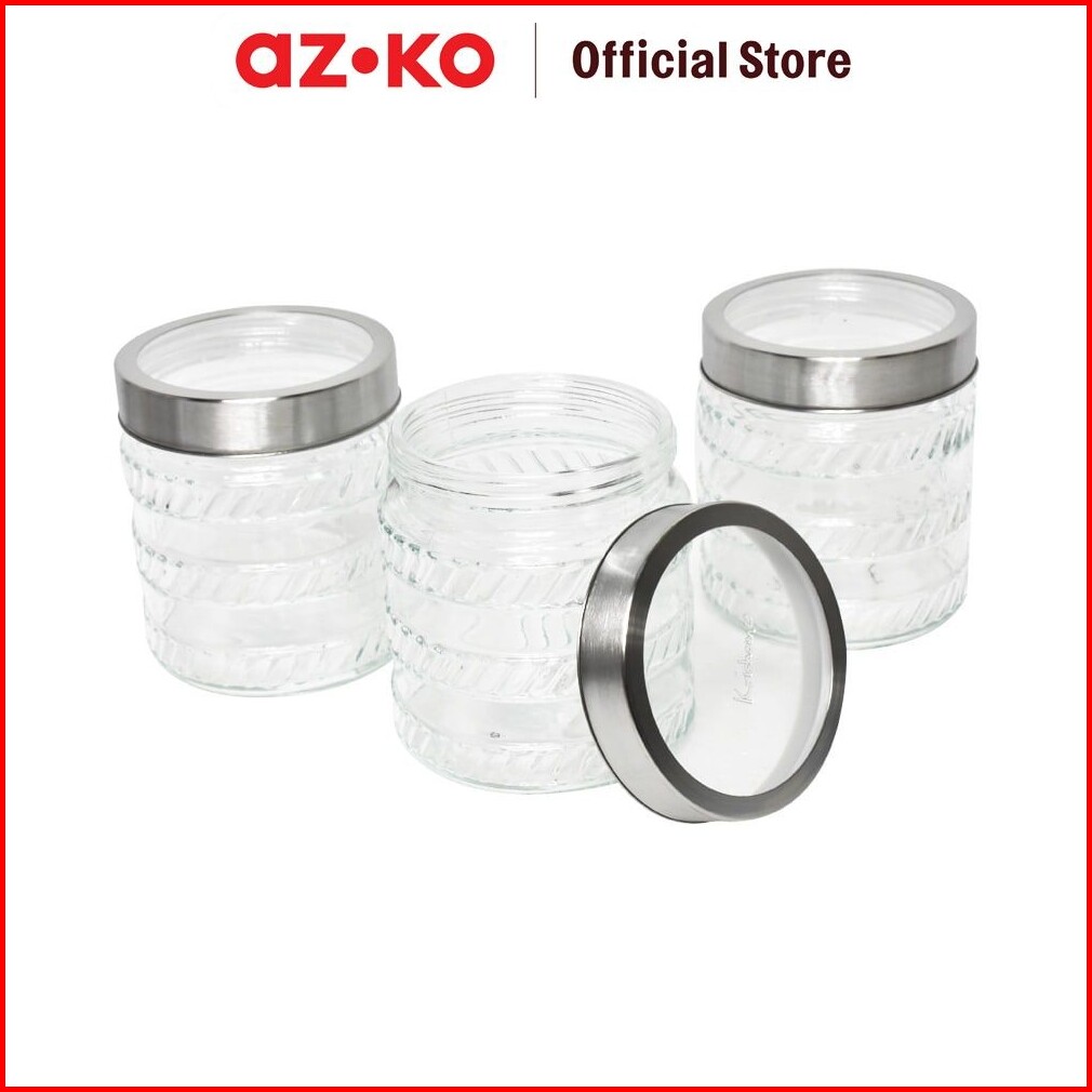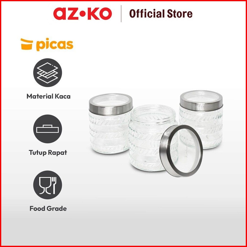 Azko Picas Set 3 Pcs Stoples Kaca Small Strips Jar Tempat Simpan Snack Dan Permen Setoples Toples Beling Serbaguna Perle