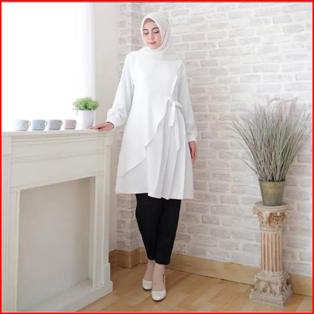 Atasan Wanita Deva Tunik Putih Terbaru 2024 Bahan Cringkle Airflow Premium