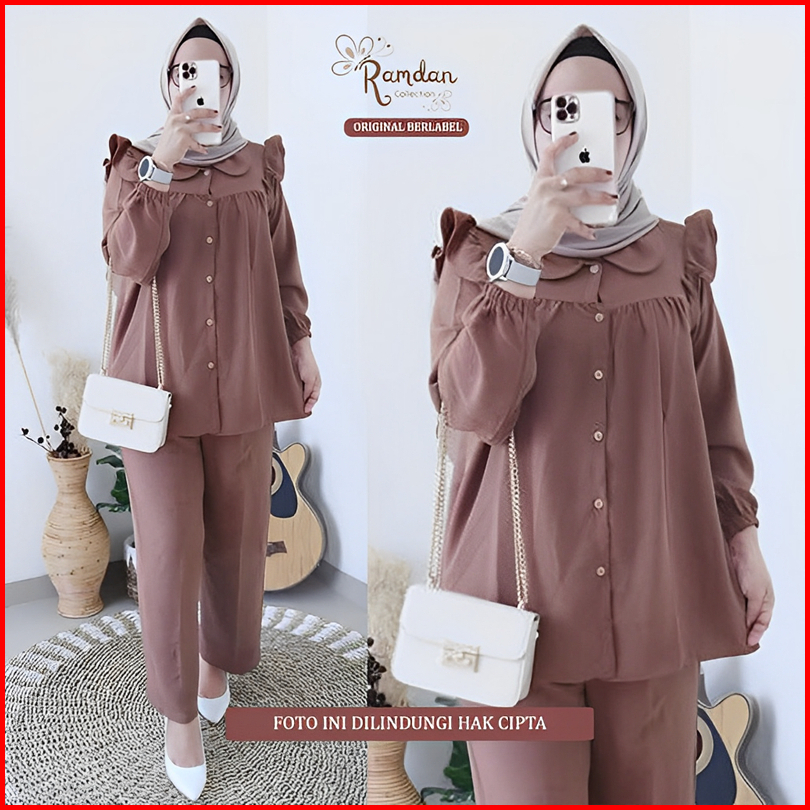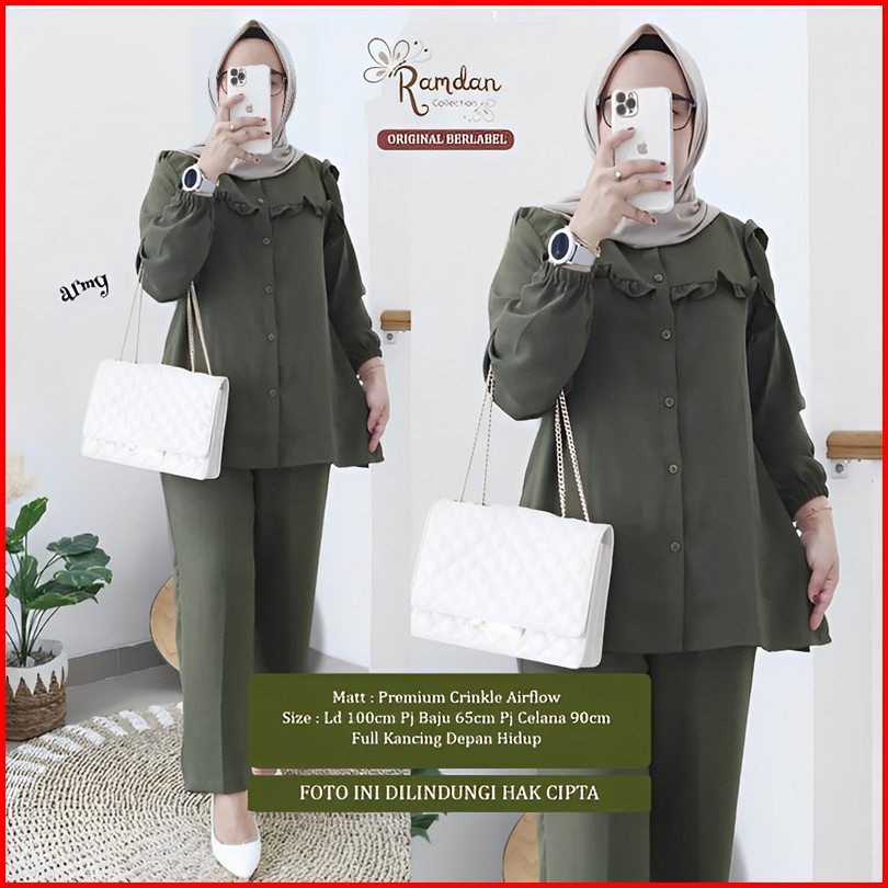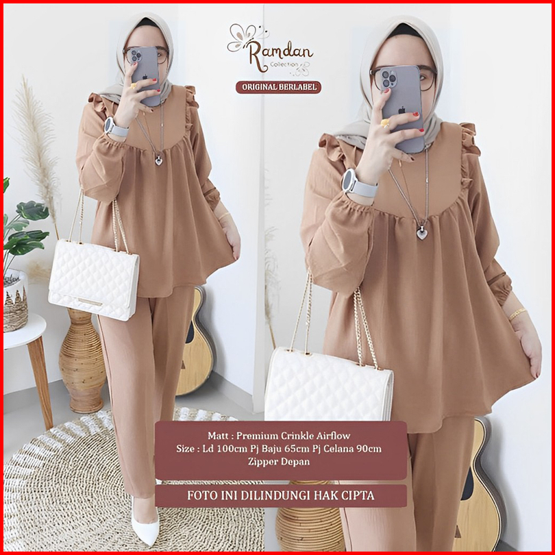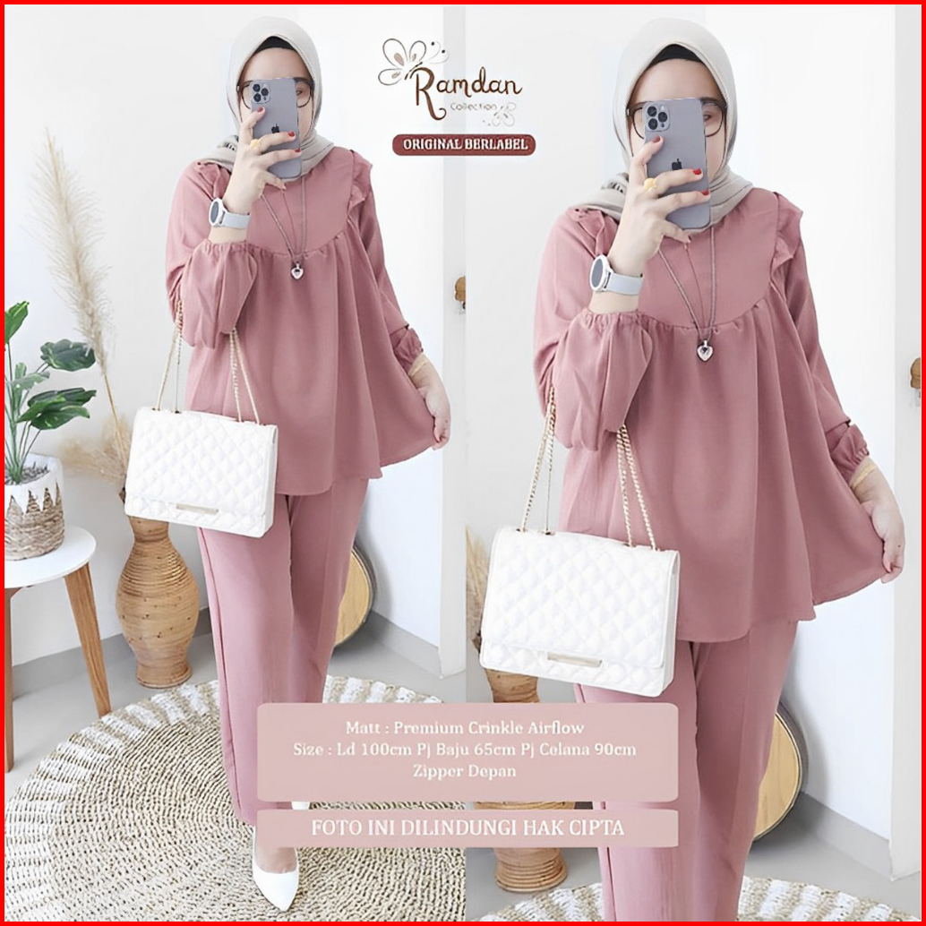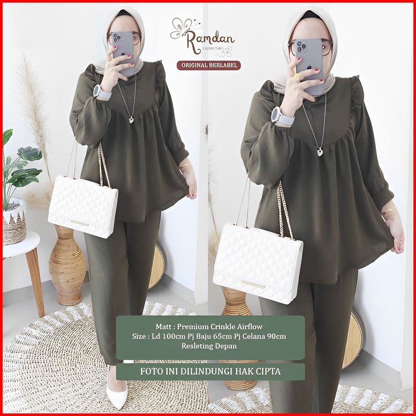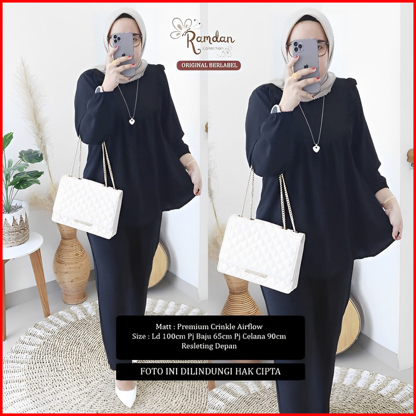 Ramdan Collection - Milly One Set Setelan Tunik Crinkle Airflow Baju Stelan Tunic Wanita Terbaru
