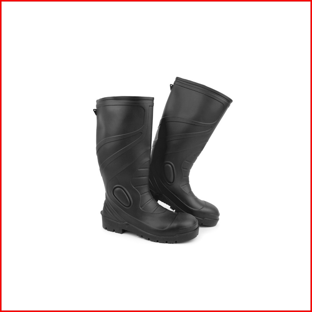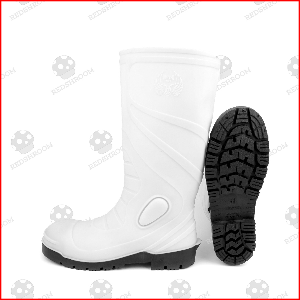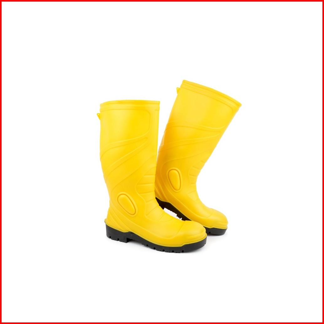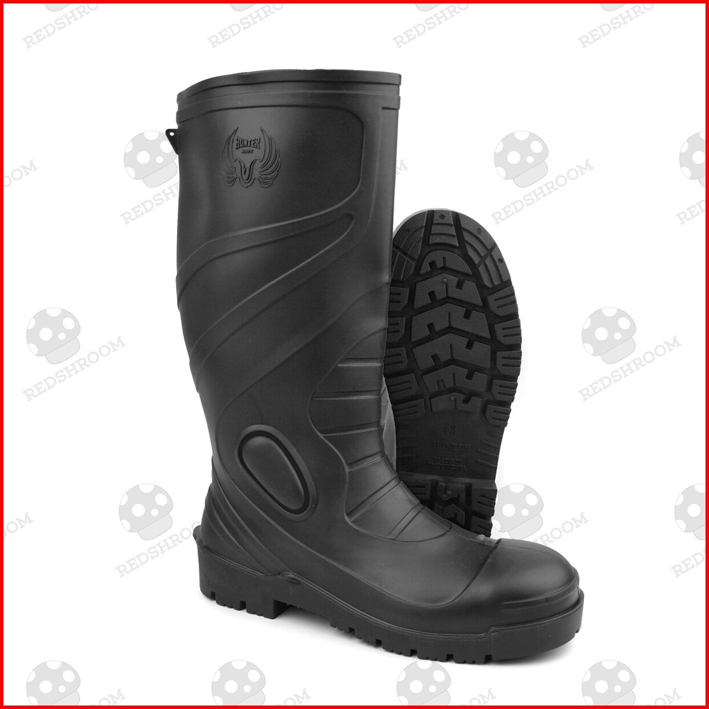 Sepatu Boot Tinggi Hunter Safety 1 Hitam Kuning Putih Toe Cap Besi Anti Slip Air Karet Lokal