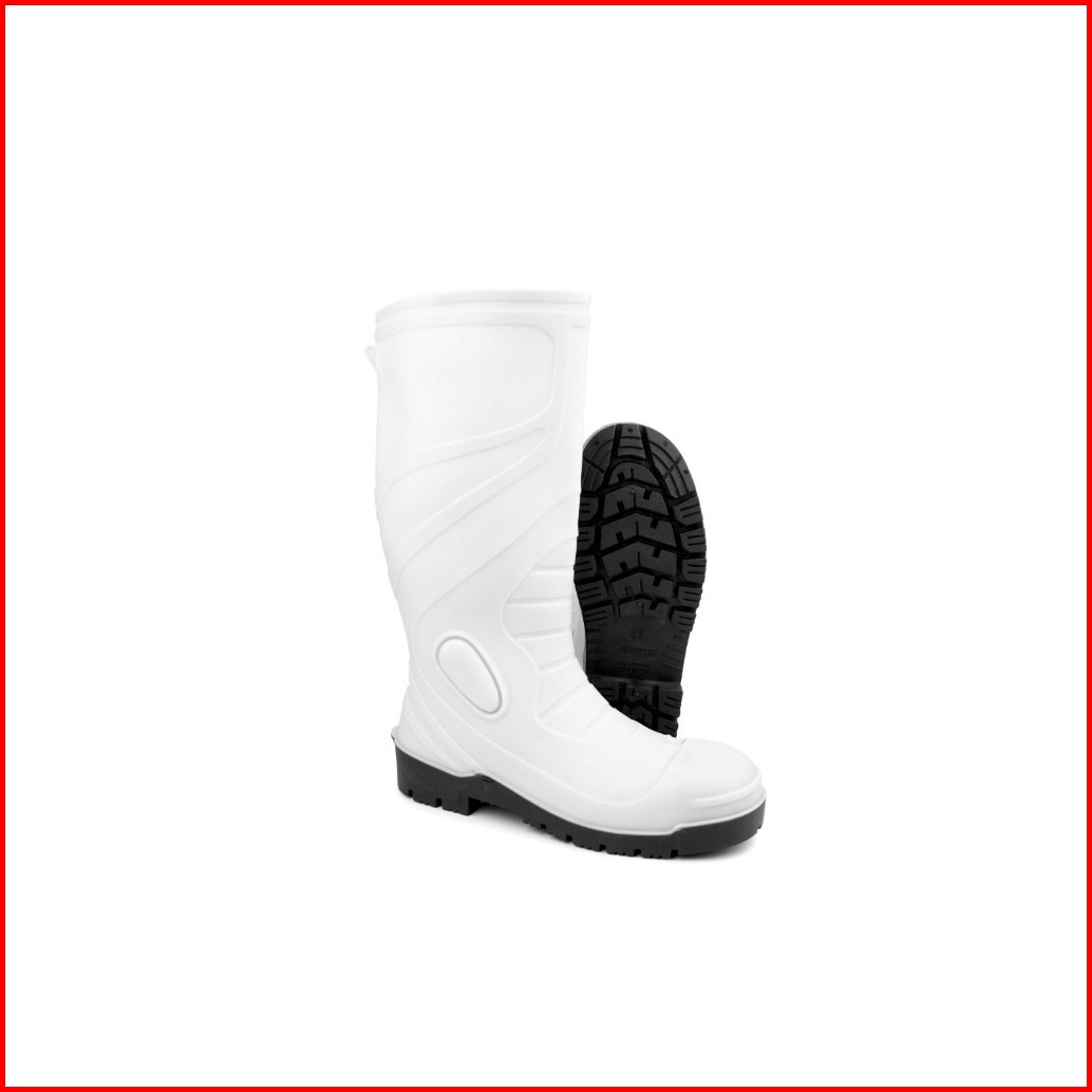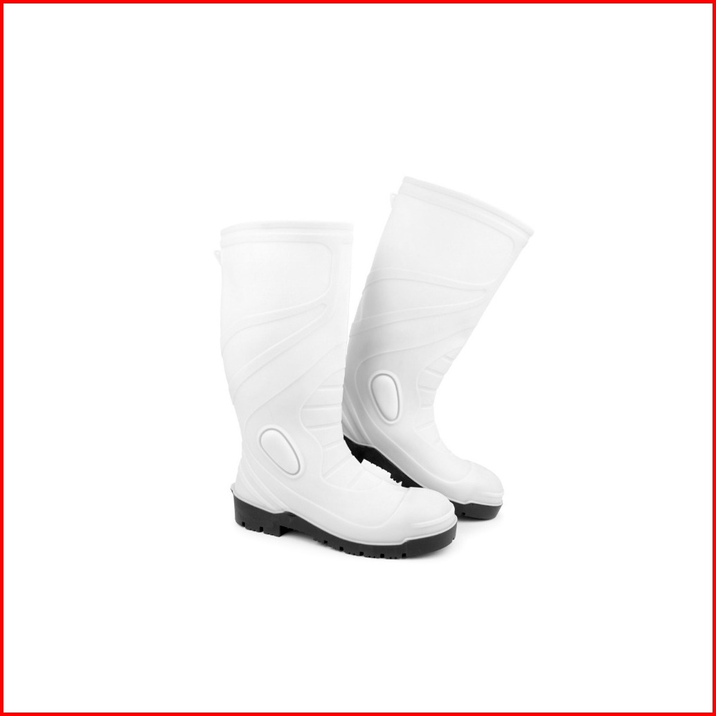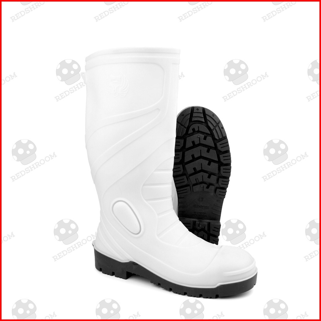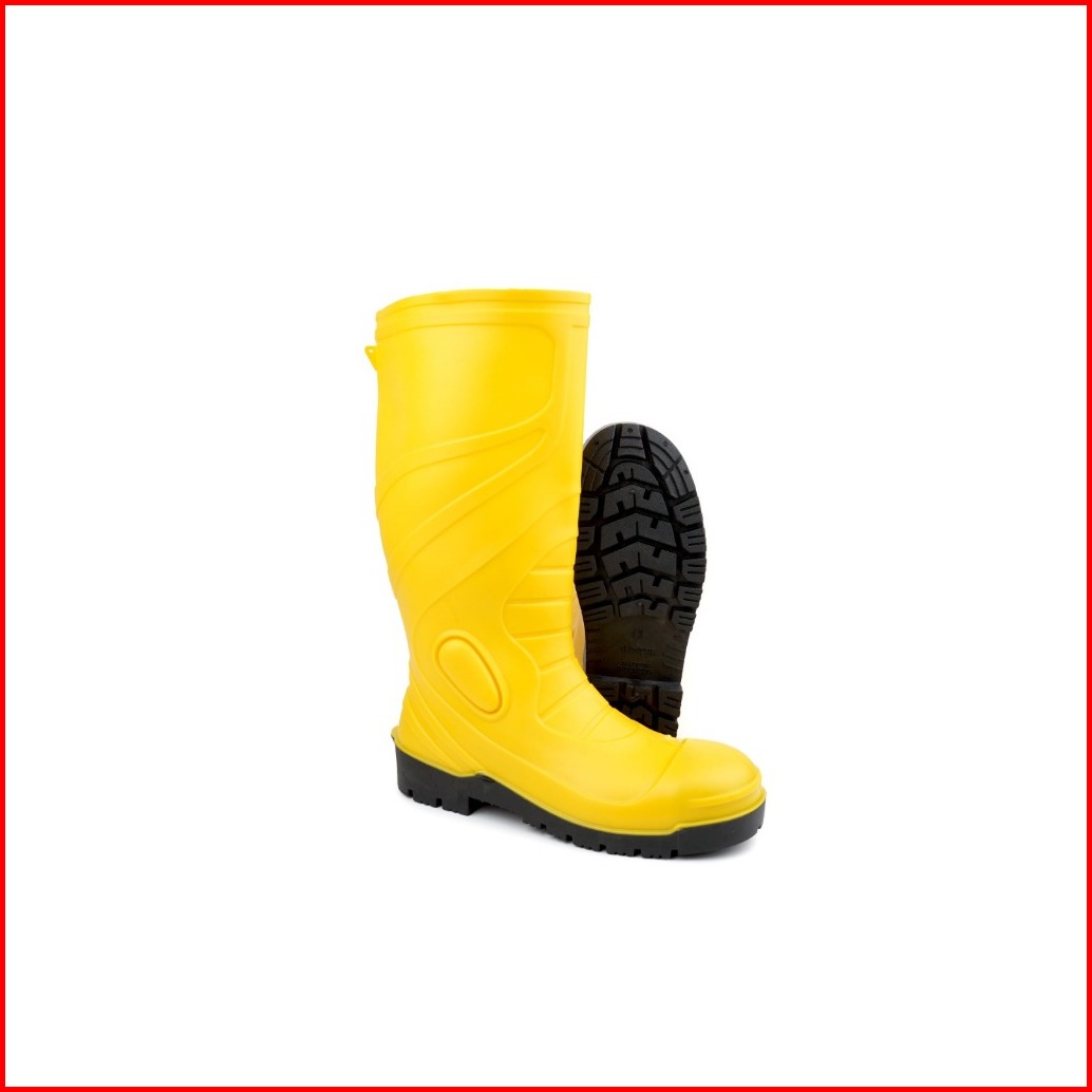 Sepatu Boot Tinggi Hunter Safety 1 Hitam Kuning Putih Toe Cap Besi Anti Slip Air Karet Lokal