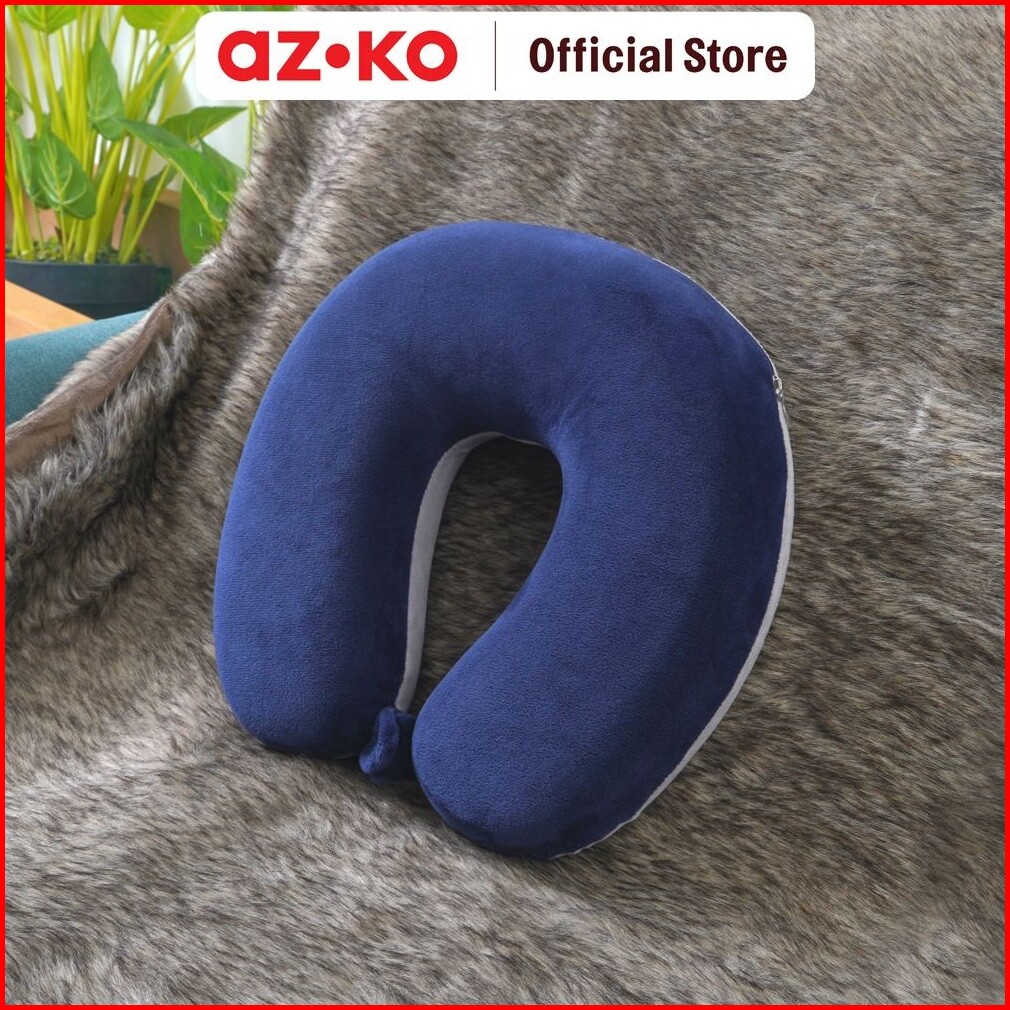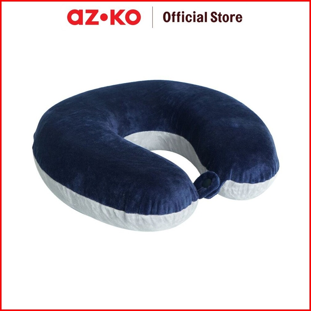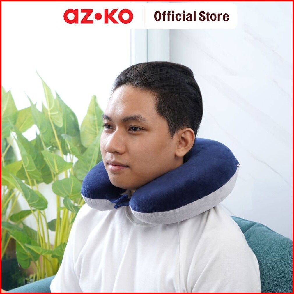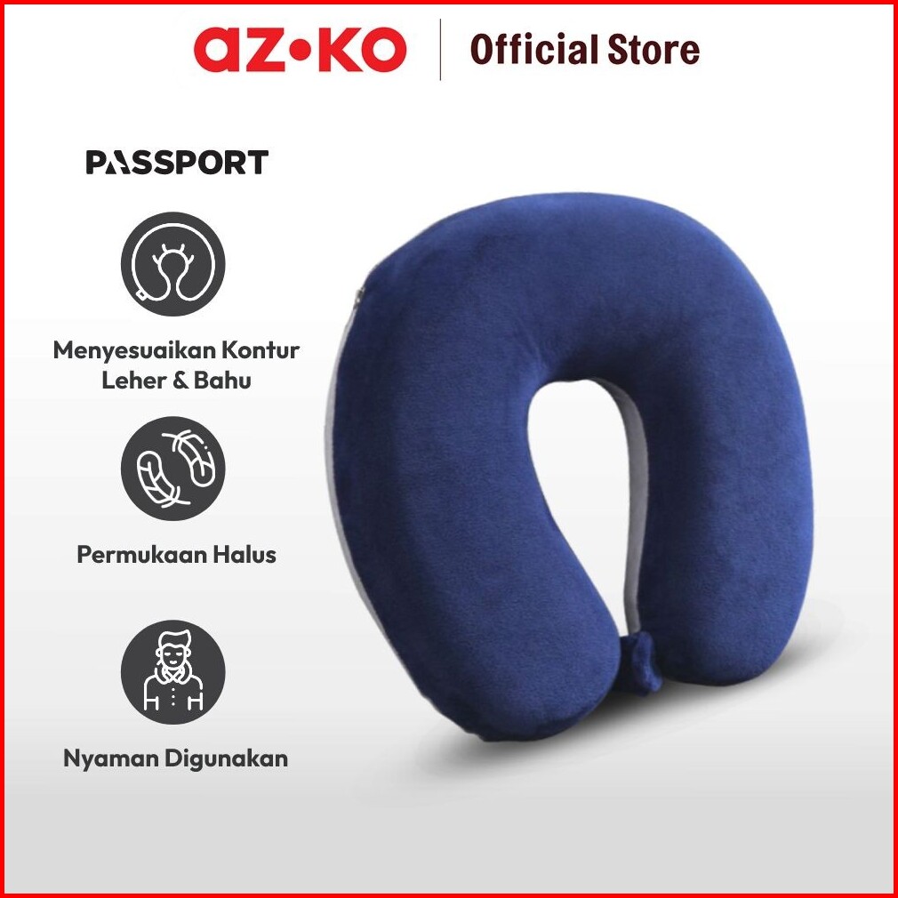 Azko Passport Bantal Leher - Biru Abu-abu Neck Cushion Travel Bantal Mobil U-neck Car Pillow Sandaran Leher